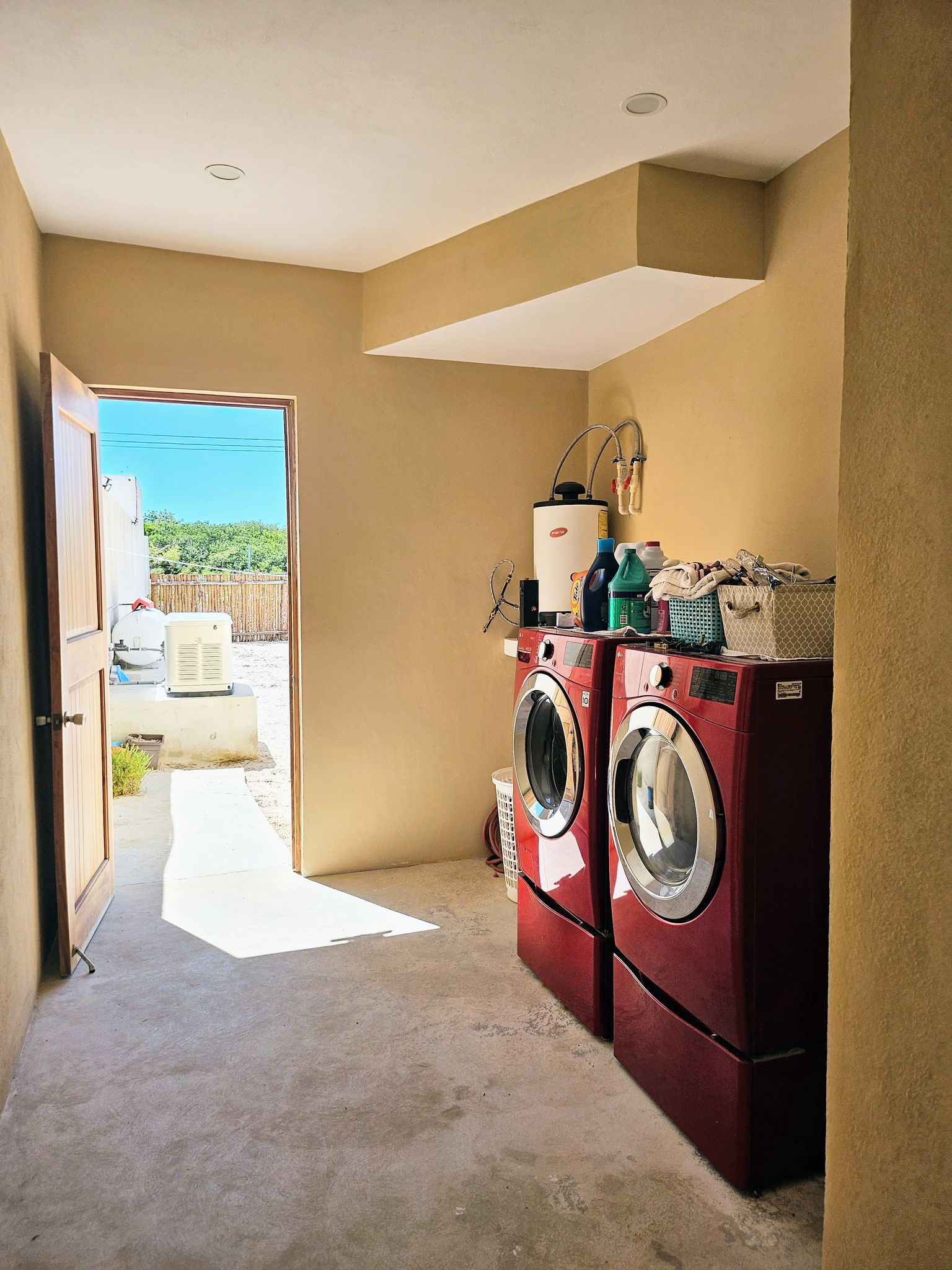 This home offers all the necessary systems, including a Generac backup generator (propane), 10 solar panels (540 watts each), reverse osmosis drinking water in the kitchen, water filter and softener, and a filtered pool.