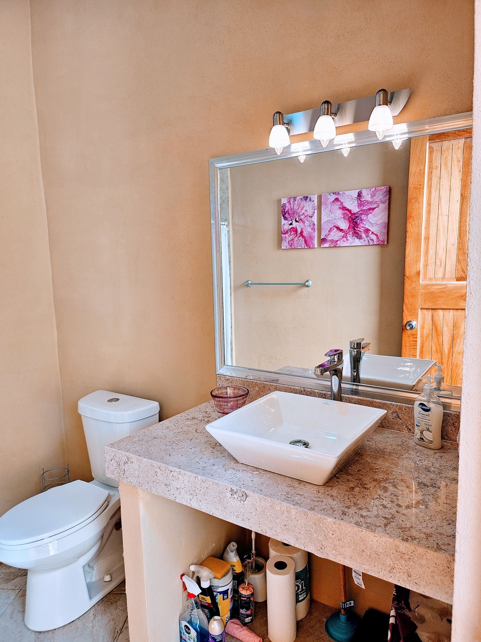 The main floor has a half bath conveniently located near the entertainment area for guests as well as a full bath just off the pool. The open floor plan allows guests to mingle throughout the main floor and the outdoor space.