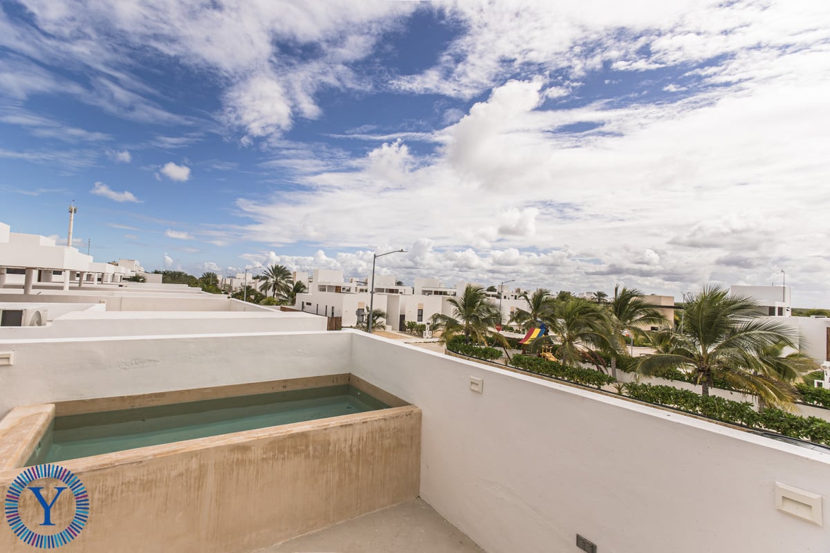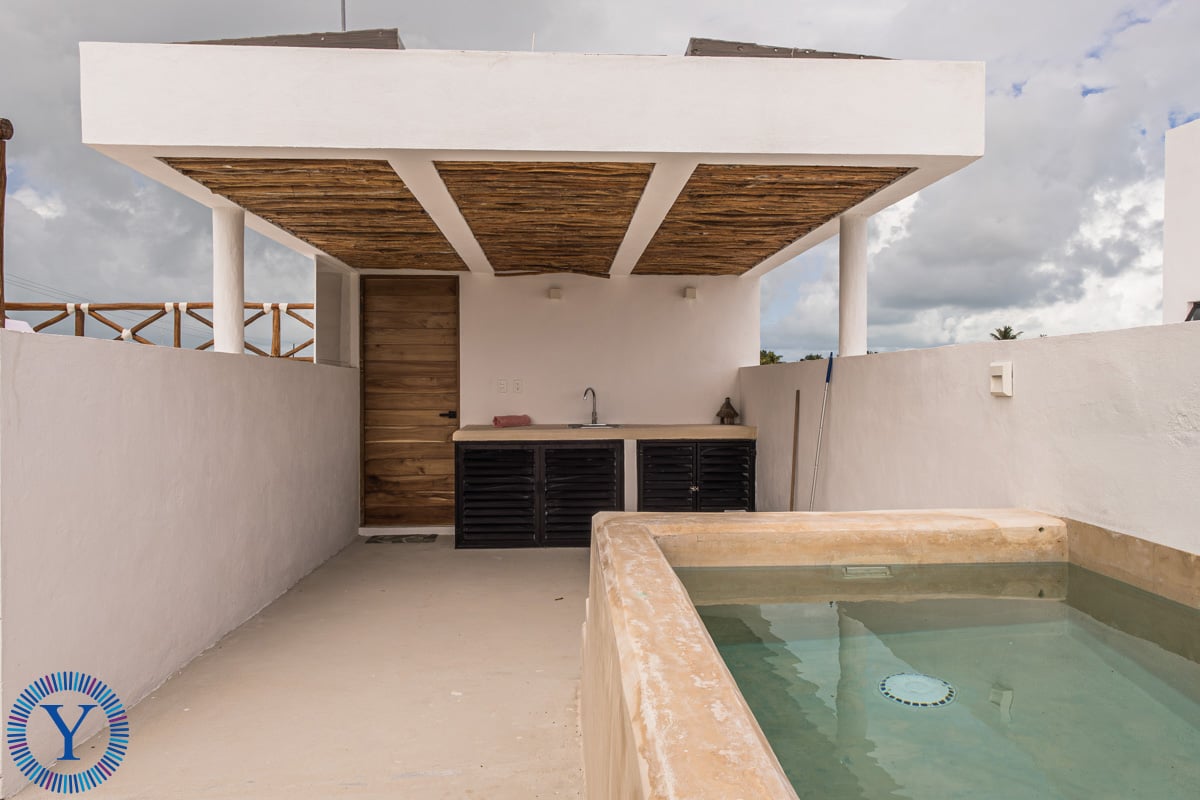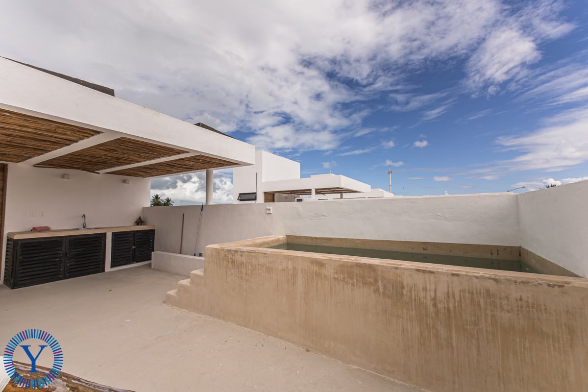This beautiful new home offers 3 bedrooms, 2 full bathrooms, a double-height open-concept room, kitchen with an island, a rear patio, and a private parking area. For additional entertainment and relaxation space there is a second floor terrace complete with a dipping pool, sundeck and outdoor kitchenette with chukum finishes.