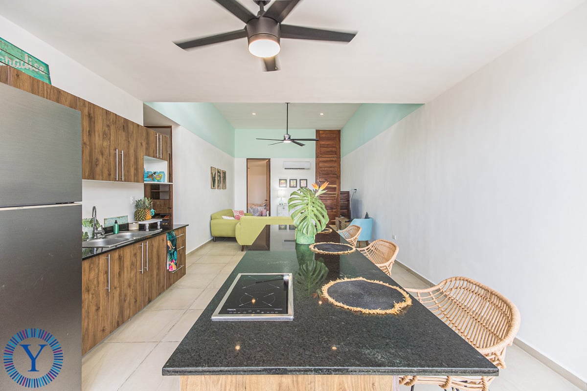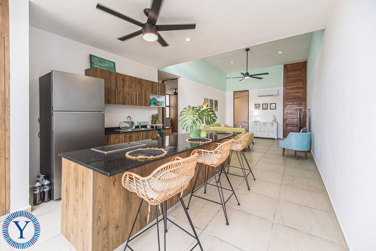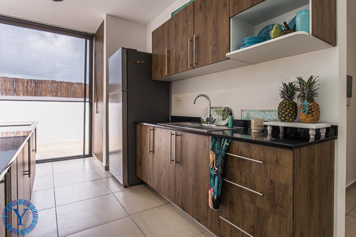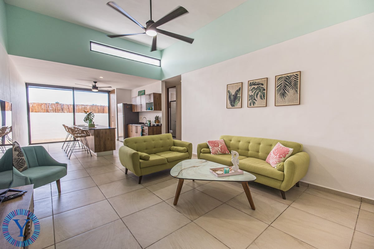 This beautiful new home offers 3 bedrooms, 2 full bathrooms, a double-height open-concept room, kitchen with an island, a rear patio, and a private parking area. For additional entertainment and relaxation space there is a second floor terrace complete with a dipping pool, sundeck and outdoor kitchenette with chukum finishes.
