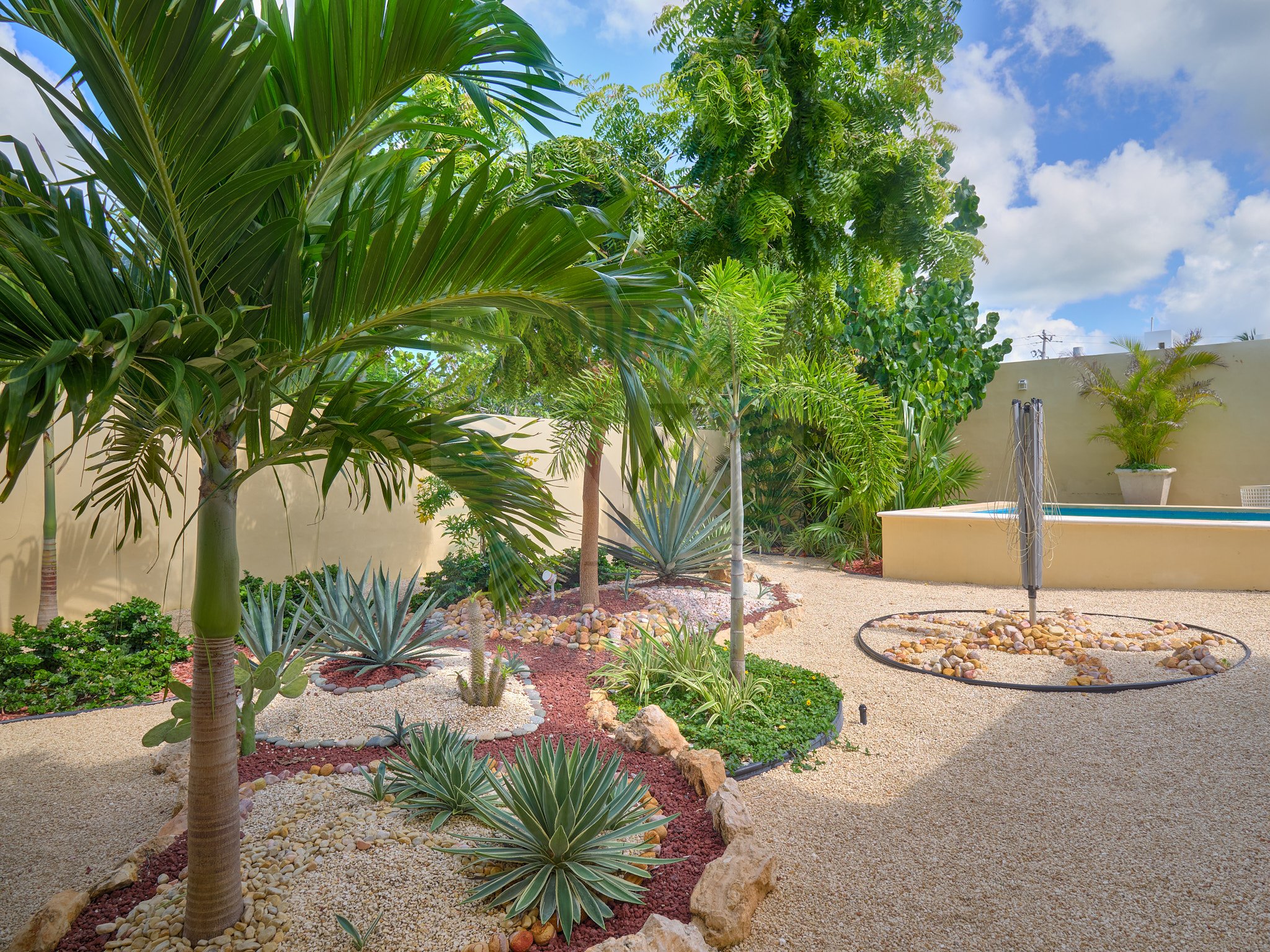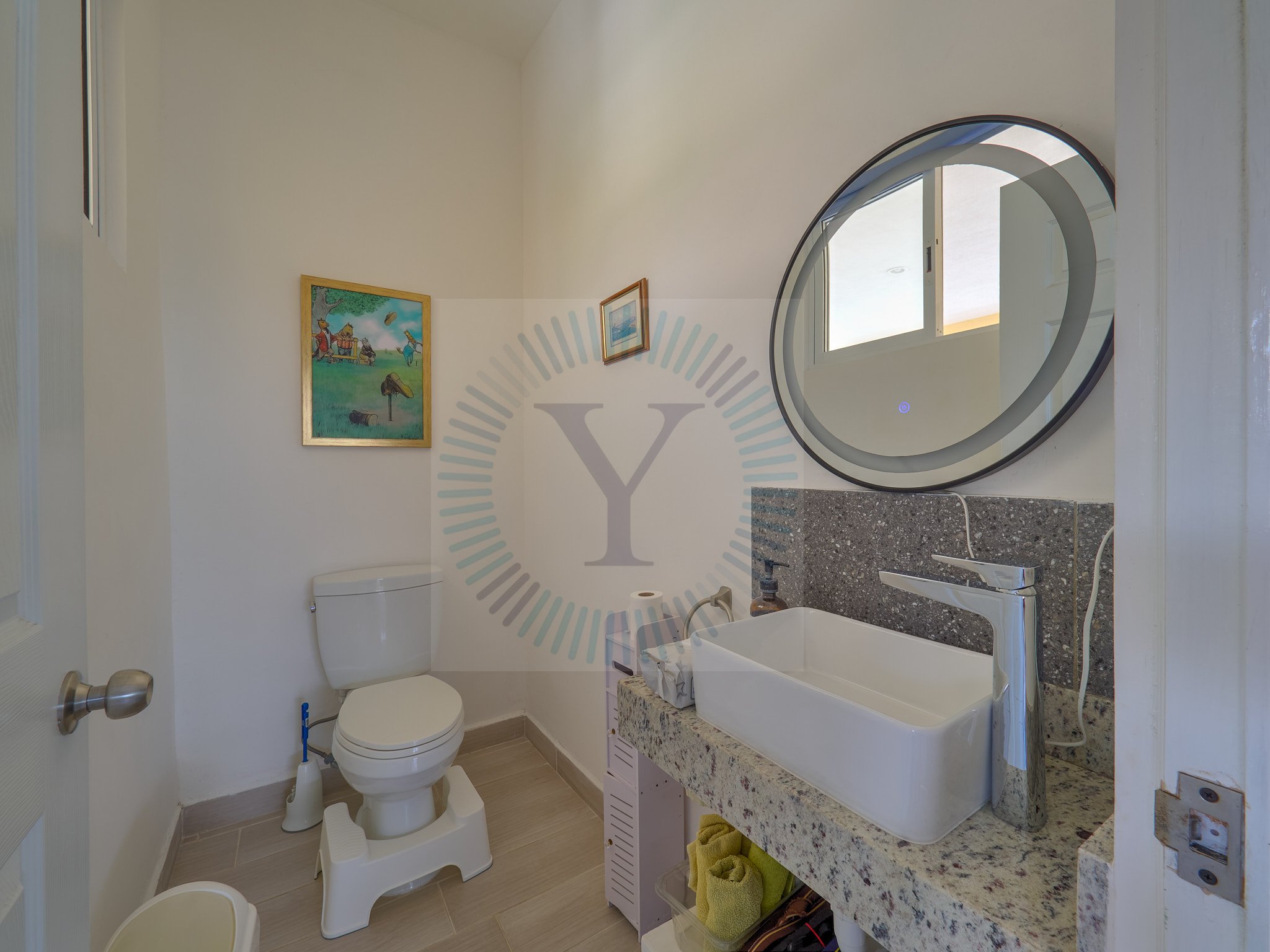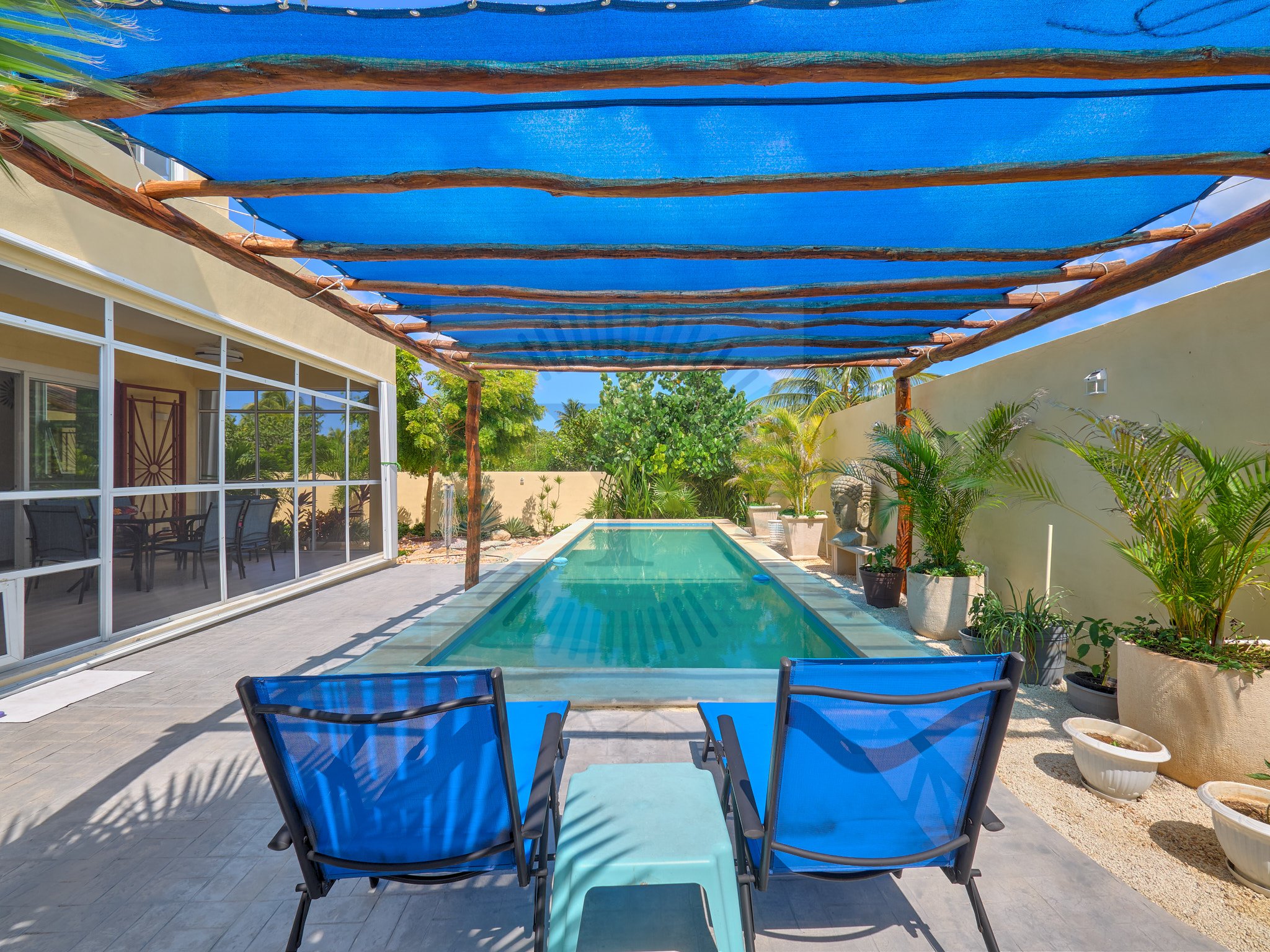 The property has a double, covered carport where the Generac 7.5kw whole house automatic generator is located & a generous sized utility sink, convenient for dog wasshing. To the left of the driveway are sliding door fronted cupboards housing the water filtration & water softening systems, electric hot water heater, whole house surge & low voltage protectors & the solar system box. On top of these concrete cupboards, near the front of the property (for easy filling access), is the stationary gas tank for the generator. A generous 5,000 liter cisterna is housed under the carport. The property has city water, but also a well for filling the pool, which can, in an emergency, feed the cisterna. In addition, the pool has an independent well into which drainage water is siphoned out. The full size pool is 22ft by 8ft & lined in chukum with a tiled top edge & has an automatic pump & filtration system. Off the pool area is an outside screened shower & an adjacent bodega housing the pool pump equipment, garden irrigation controller & also offers a poolside half bath.