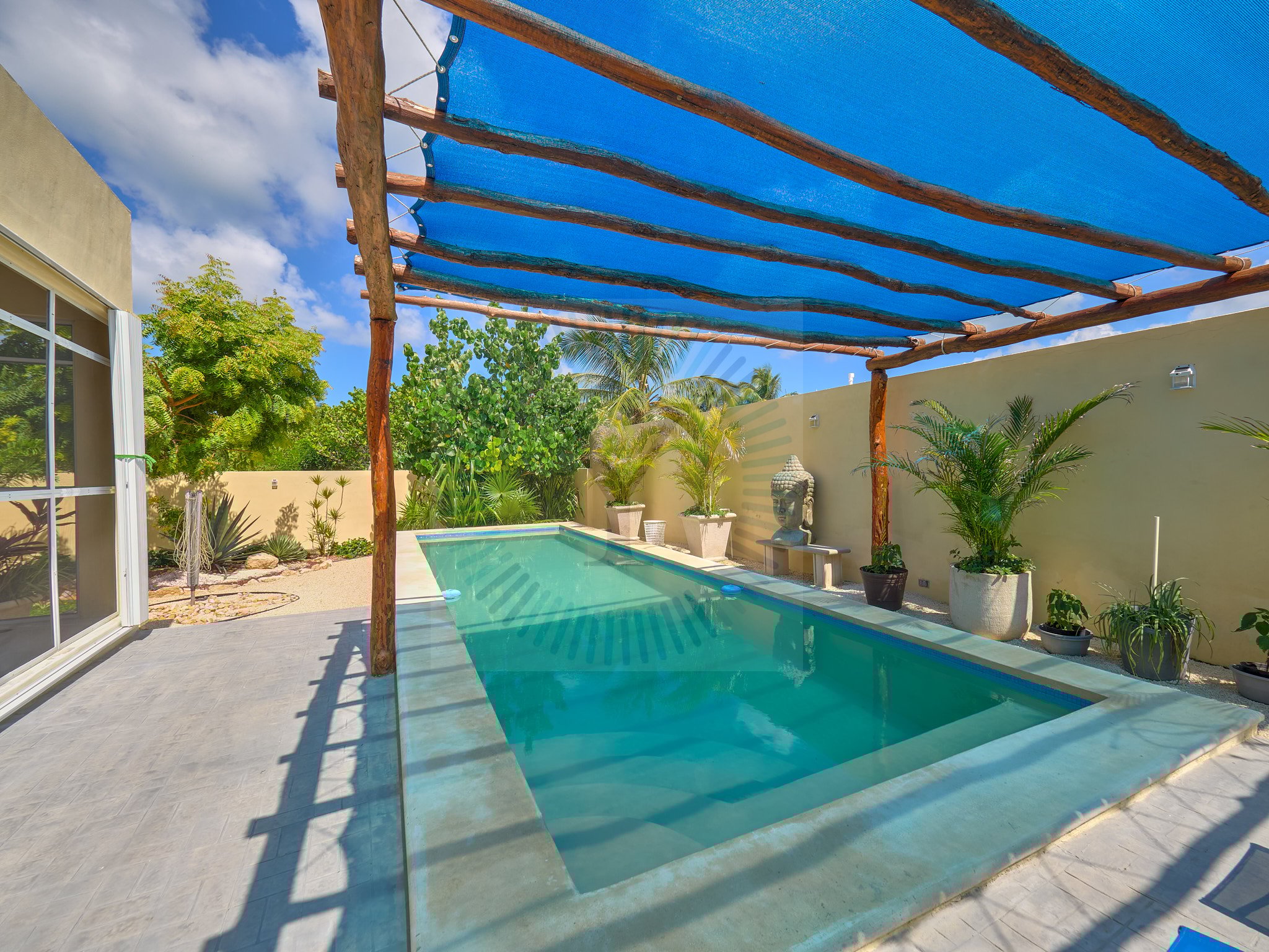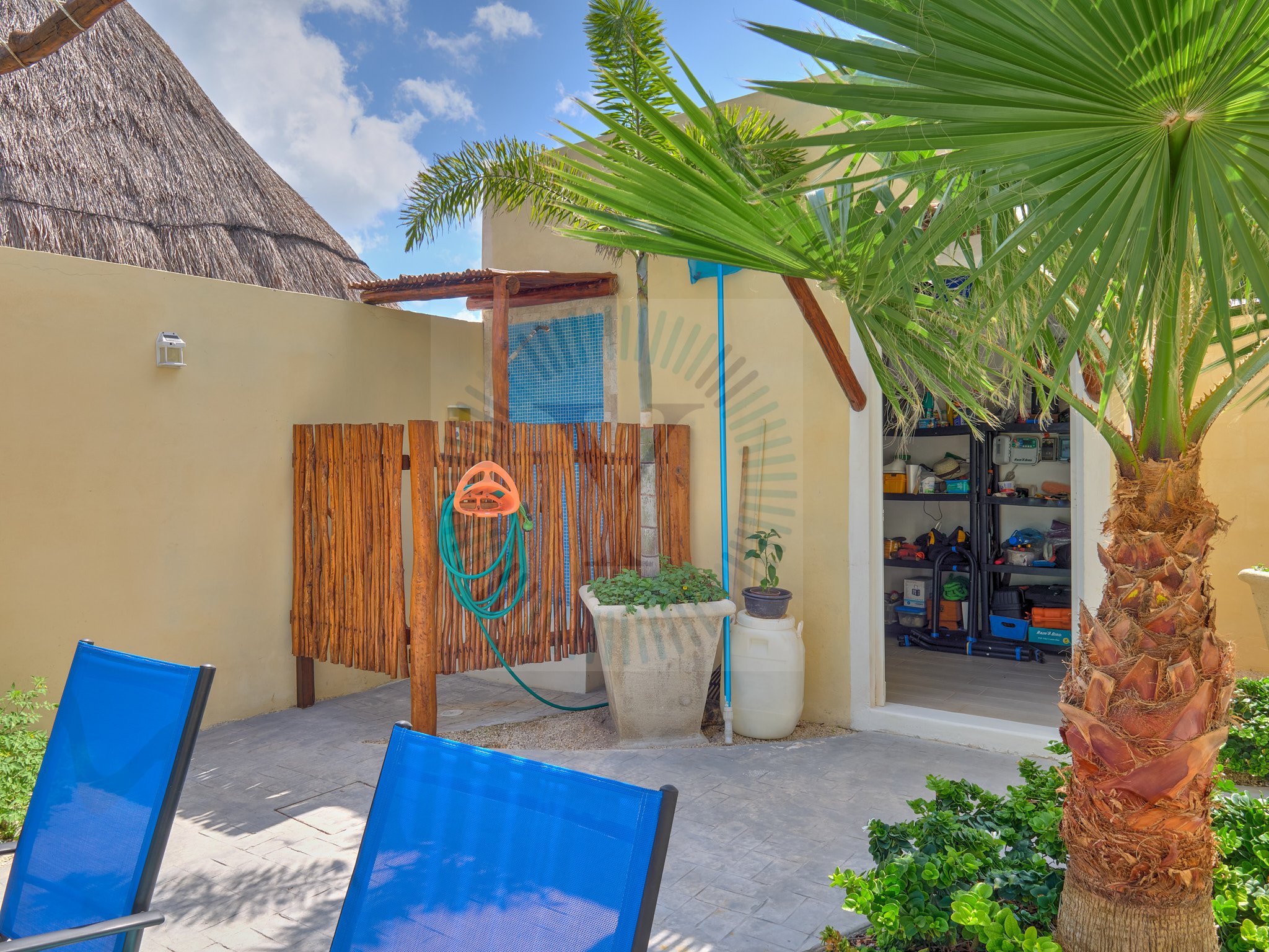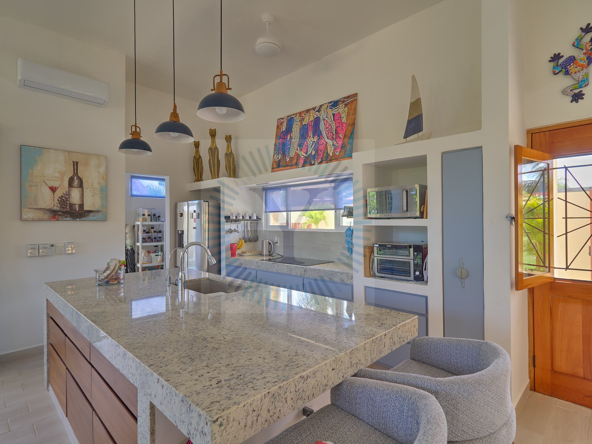 A two-year-old bright, airy & light filled, custom designed house that has incorporated all the features to make living life at the beach a breeze! The house comprises 181 sq meters of construction, situated over a 563 sq meter lot at the end of a quiet, tucked away privada, four blocks from the beach (on the Ria side), completed in February 2024.