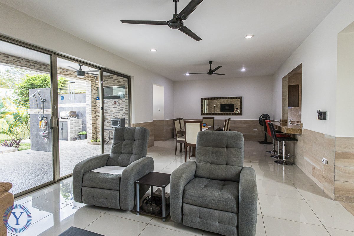 This home is the perfect size for the retirees looking to live there full-time or part-time. Casa Carlota offers balanced indoor and outdoor spaces for entertaining, including a covered terrace, swimming pool, greenery, and a BBQ area.