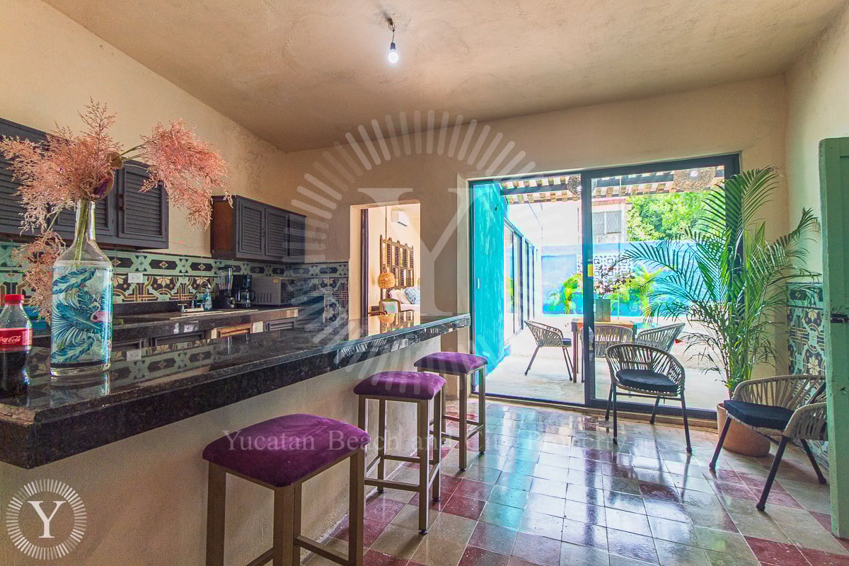 A single story home with an excellent location in the center of Merida. This beautiful colonial home retains many of the historic details such as pasta tile floors and masonry walls. The house has been updated with granite countertops and Chukum finishes.