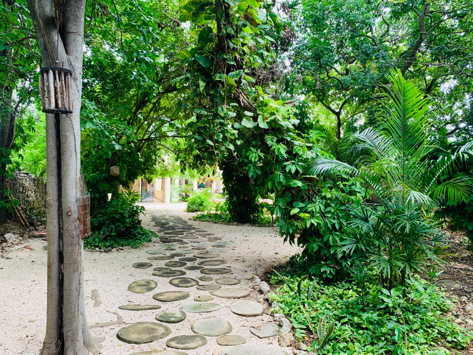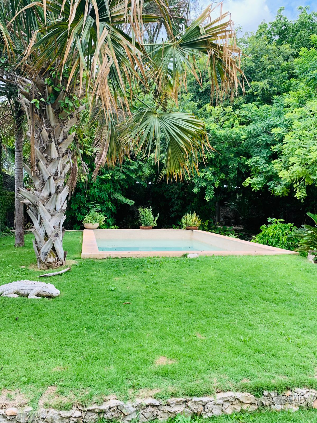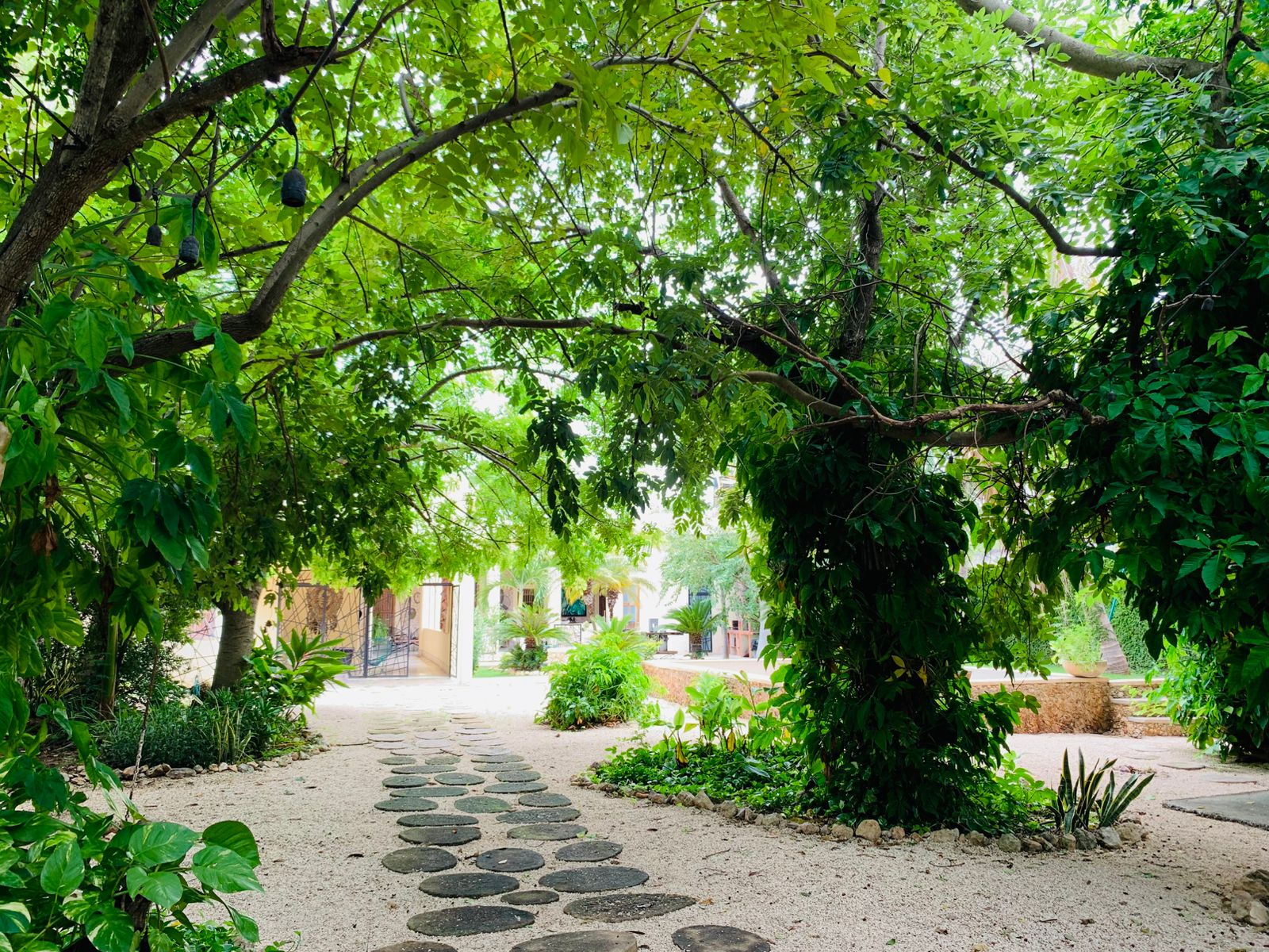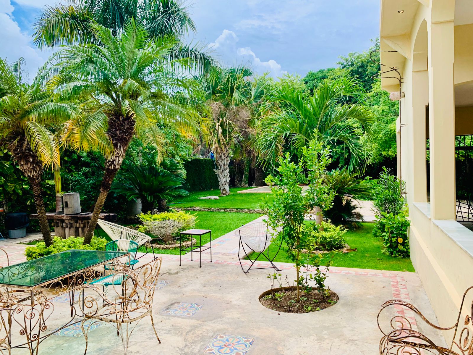 El jardín, diseñado por el reconocido arquitecto paisajista Riverino Murrieta —autor de varios campos de golf de talla internacional—, es un verdadero oasis, con piscina y majestuosas cicas centenarias importadas de Japón.