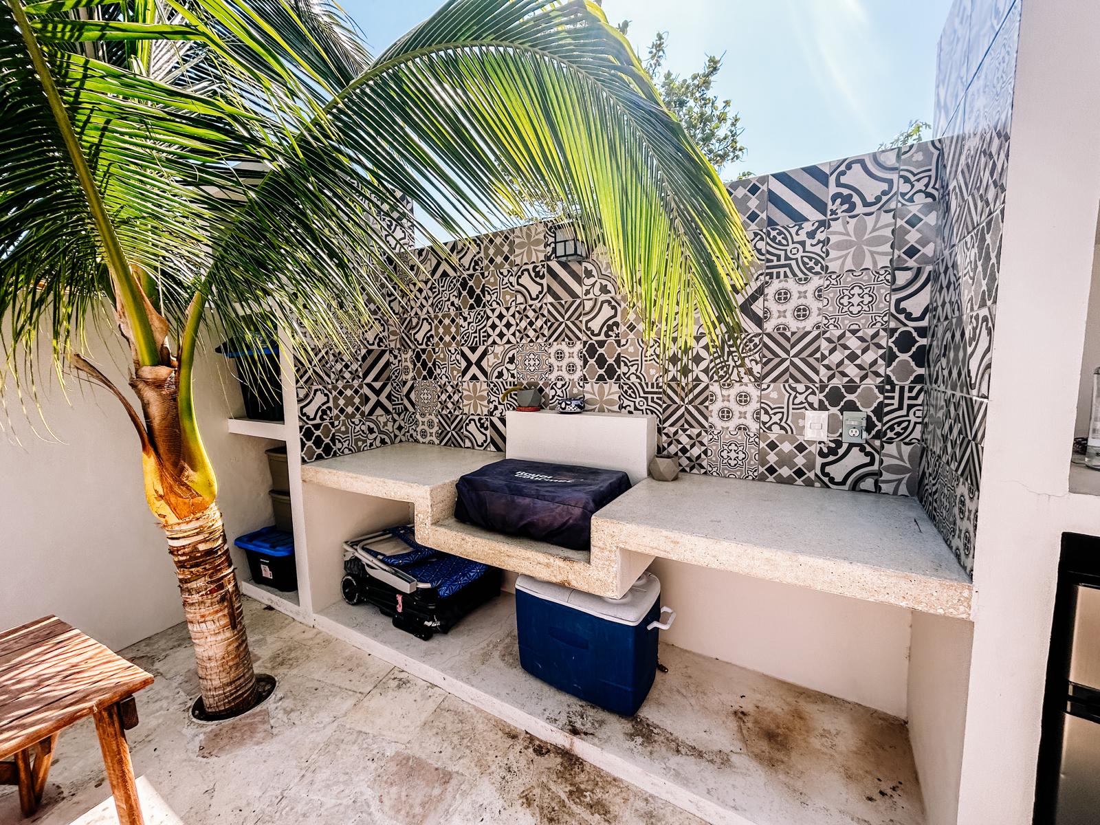 Practical features include off-street parking for two vehicles, pressurized water, and outside storage. The home is also fully equipped for immediate enjoyment, boasting a cooktop, refrigerator, washing machine, air fryer, and convection oven. The delightful use of Talavera sinks and a pasta tile accent wall infuses the space with local charm and character, mirroring the beauty of its surroundings.