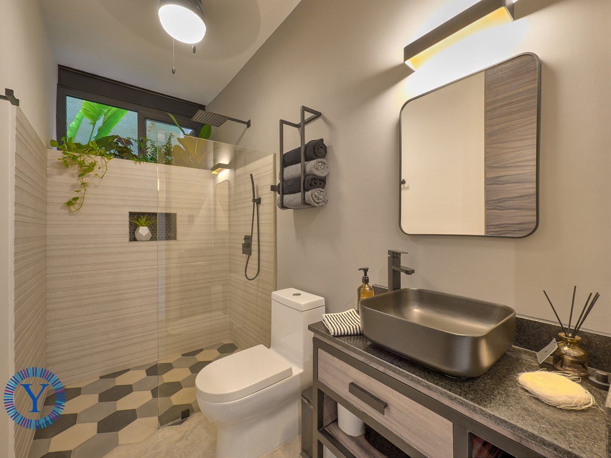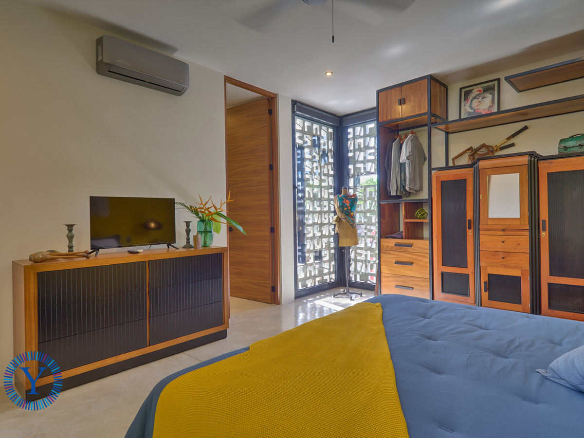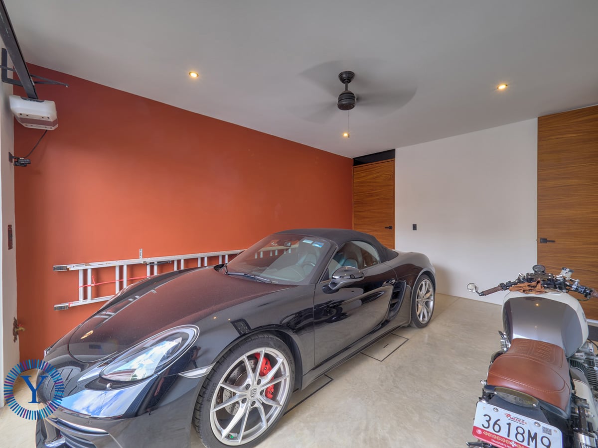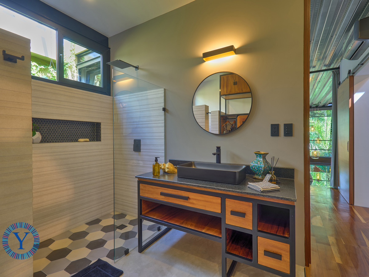The home includes two spacious bedrooms upstairs each with their own full bathroom and closets. The floors in the homes continue to impress throughout with the combination of polished cement finishes, Parota wood, and a stunning glass balcony on the second level.