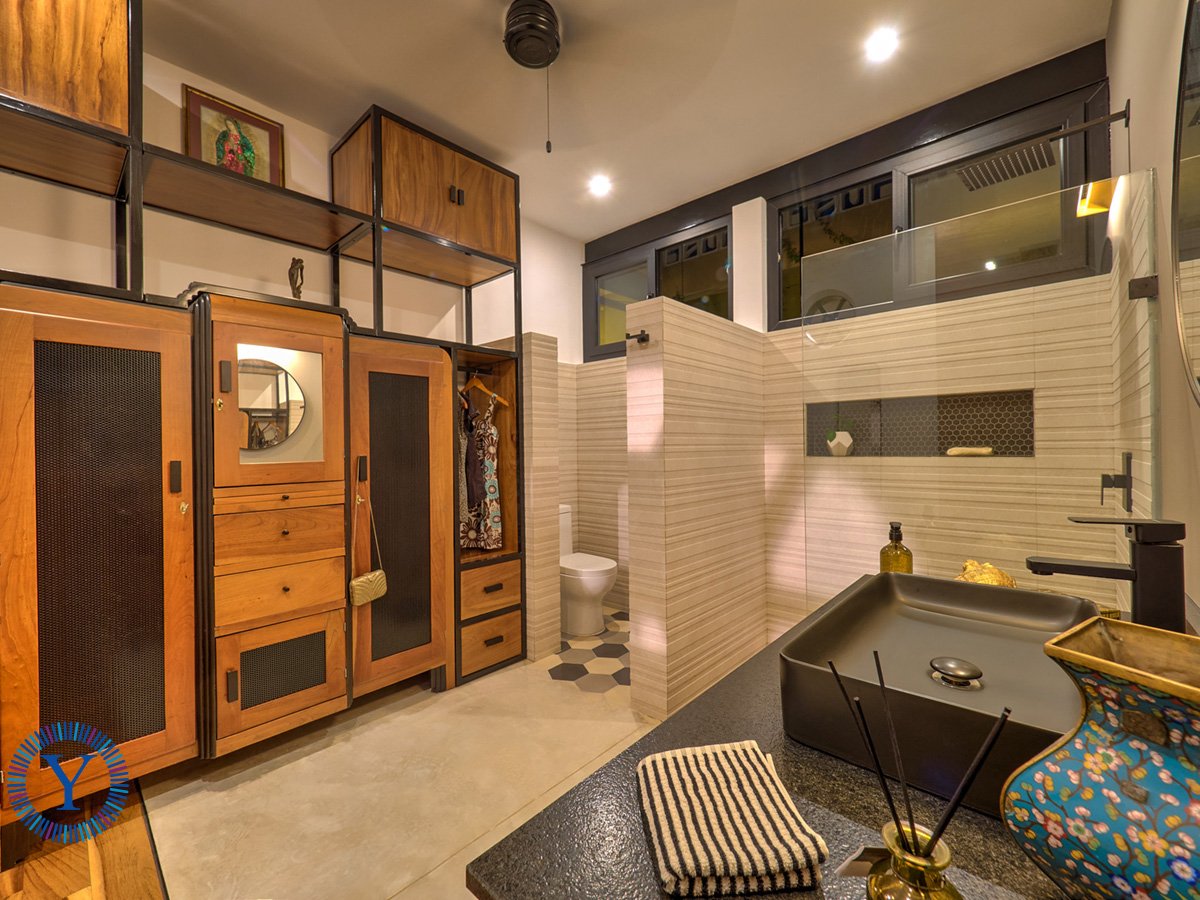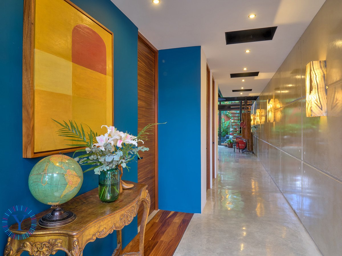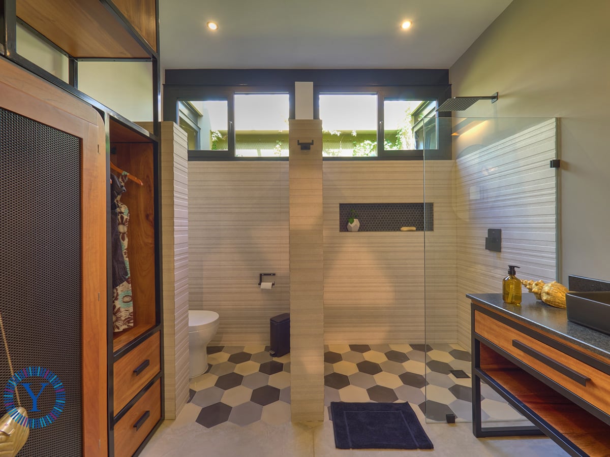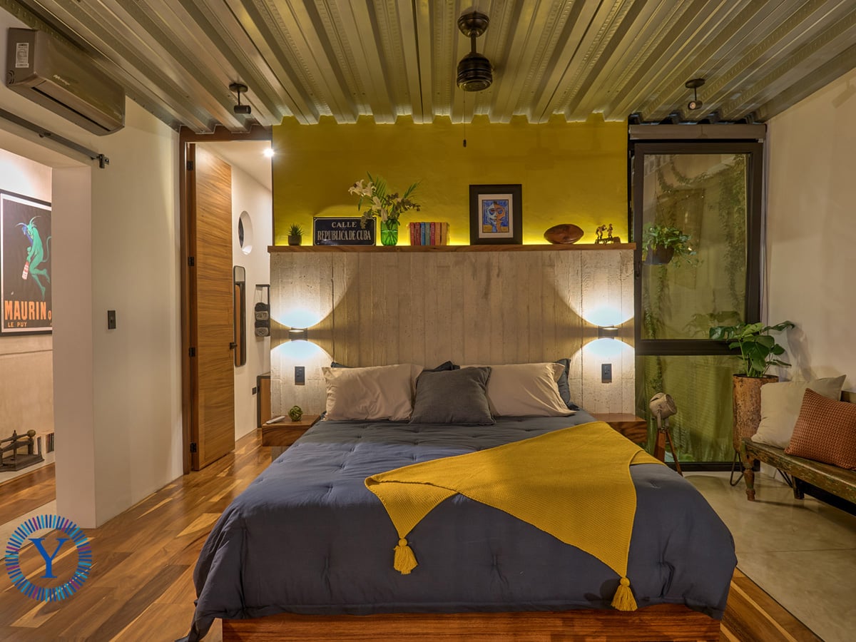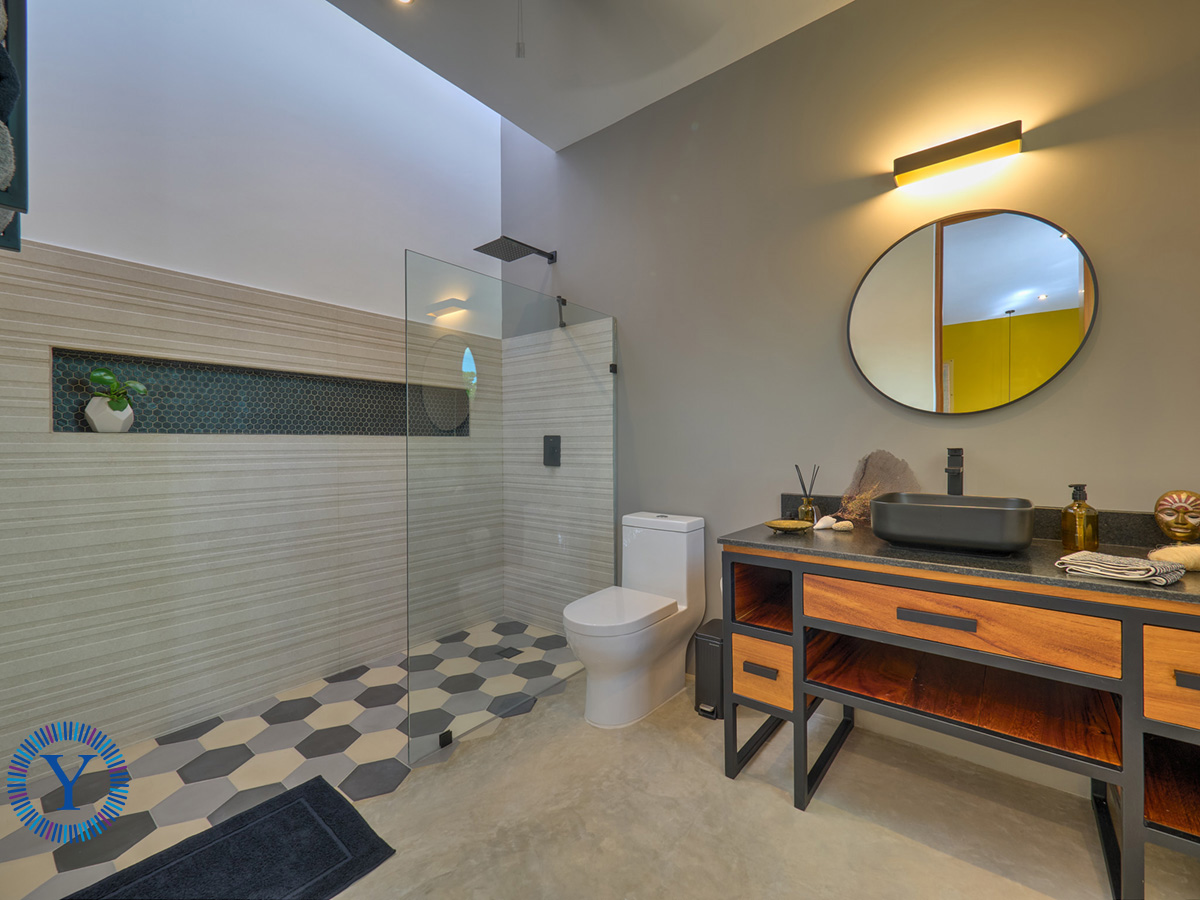 The home includes two spacious bedrooms upstairs each with their own full bathroom and closets. The floors in the homes continue to impress throughout with the combination of polished cement finishes, Parota wood, and a stunning glass balcony on the second level.