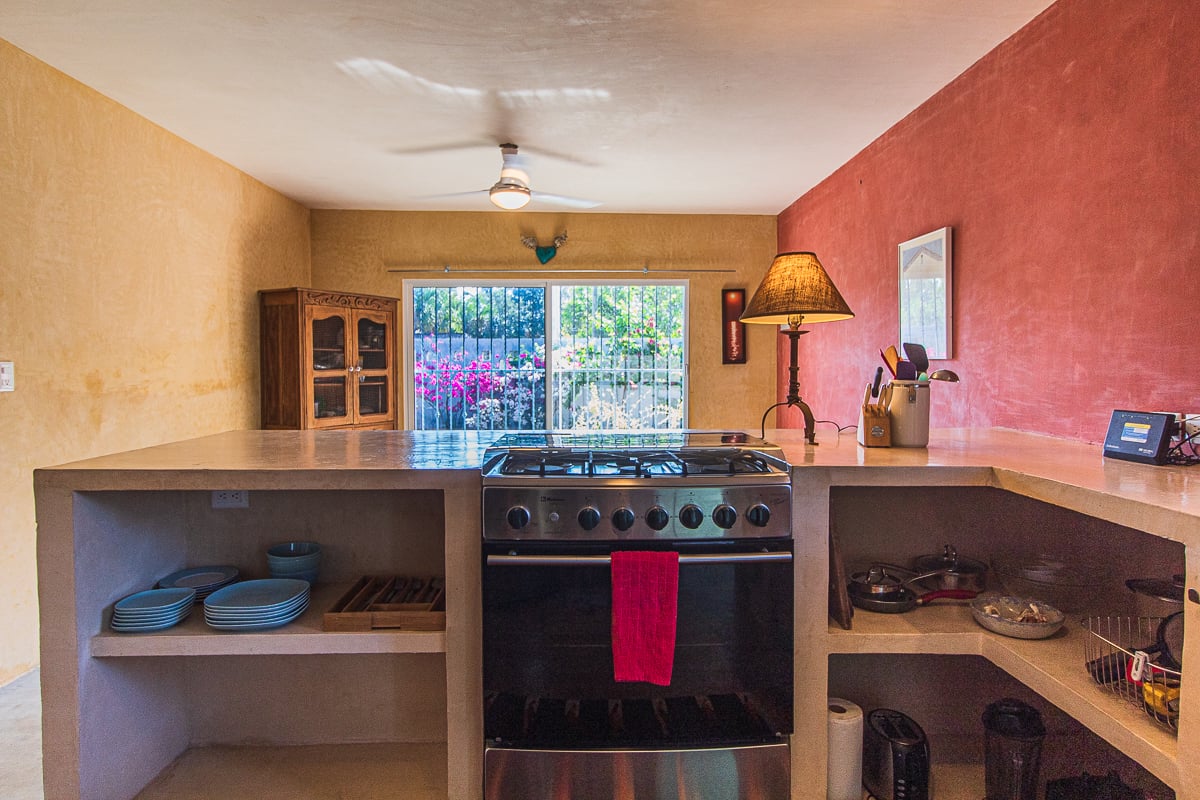 Young trees of mango, orange, lime, guayaba, ciruela, banana plants, Chaya, olive, and aromatic herbs such as Mexican oregano, tea and lavender are growing in the property.