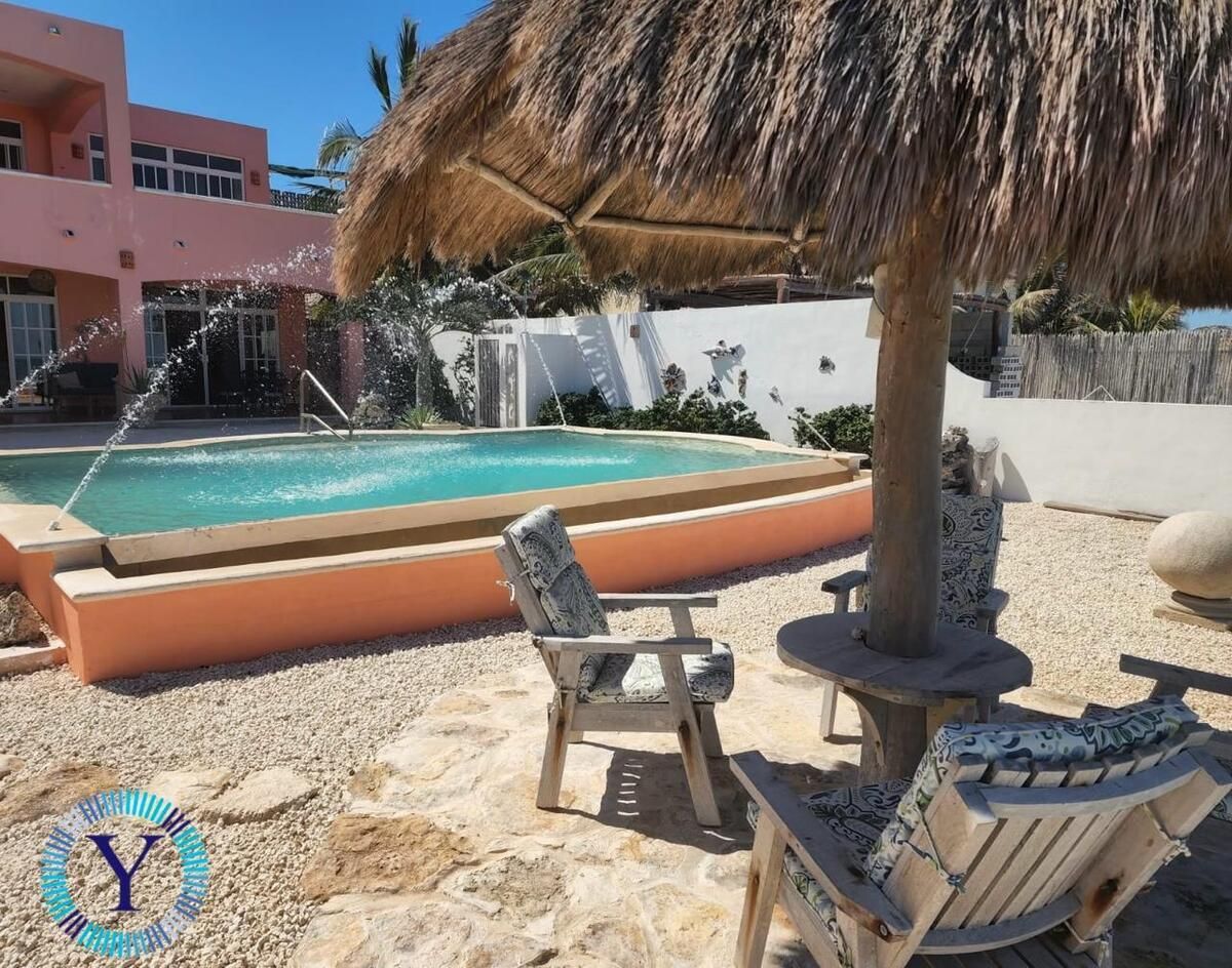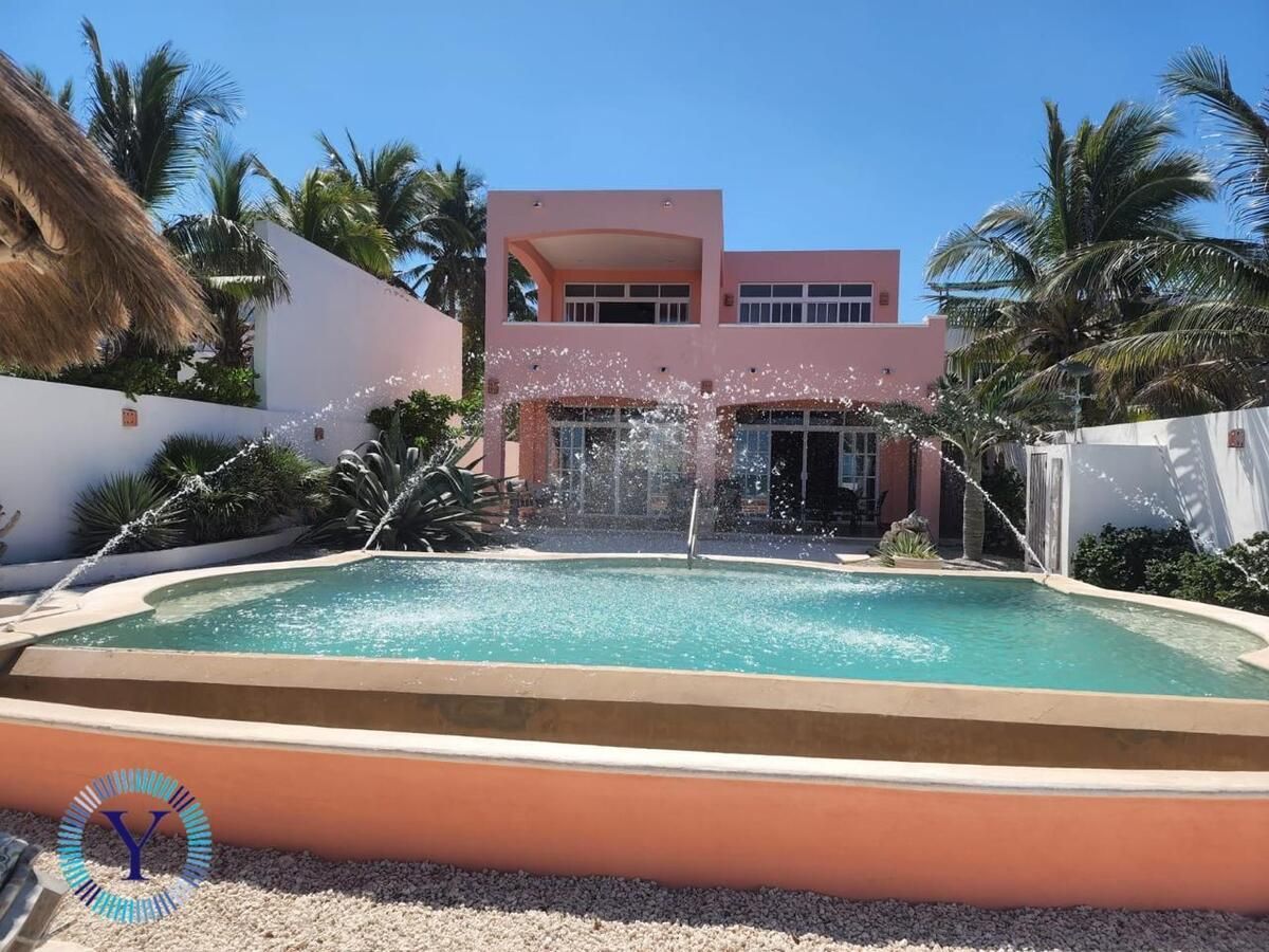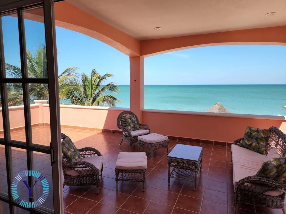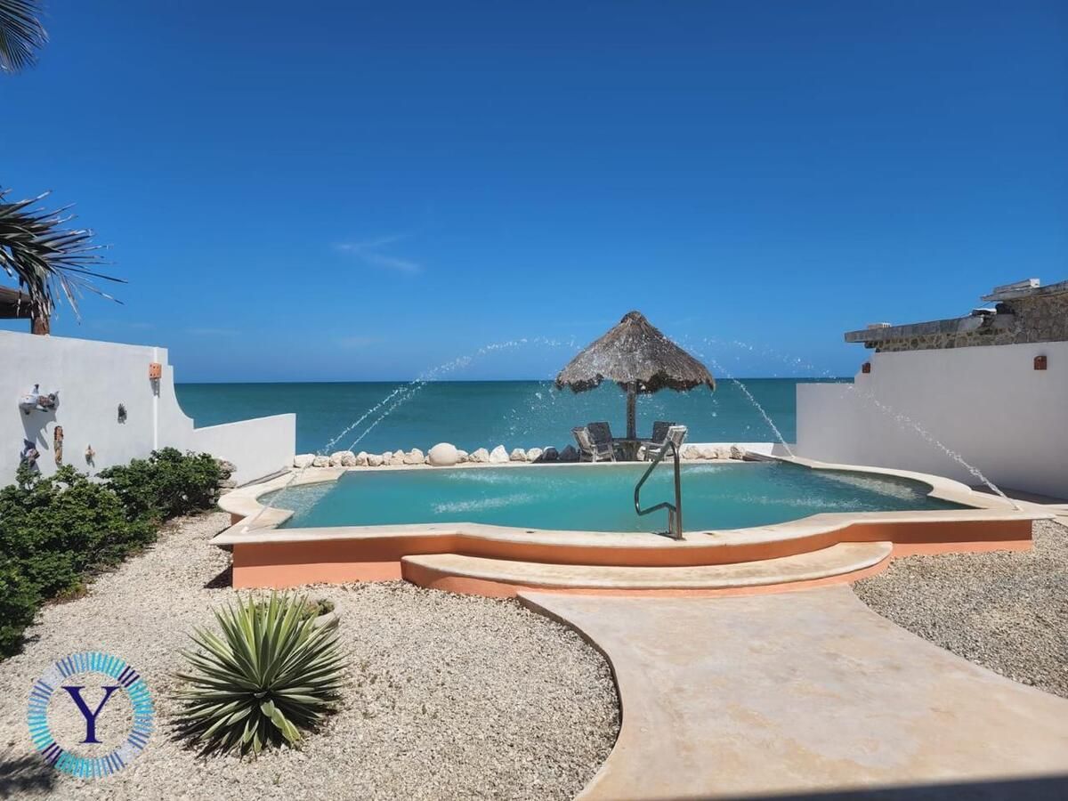This could be the nicest beachfront home in the area.  An easy walk to town, restaurants, groceries, and stores.  A quick 15-minute drive to Progreso, where you will find everything you need from banks, a hospital, and world famous Malecon.  30-minute drive to Merida, one of the safest cities in the world.