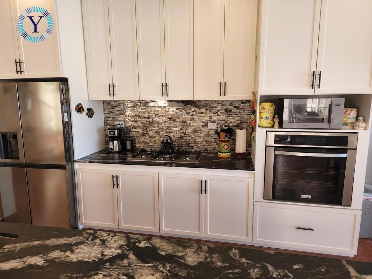 • Incredible custom wood kitchen with granite countertops, built-in oven, cooktop, and dishwasher
