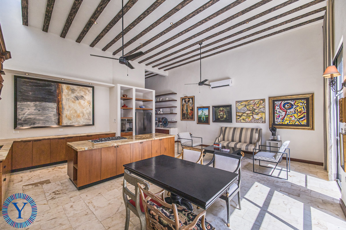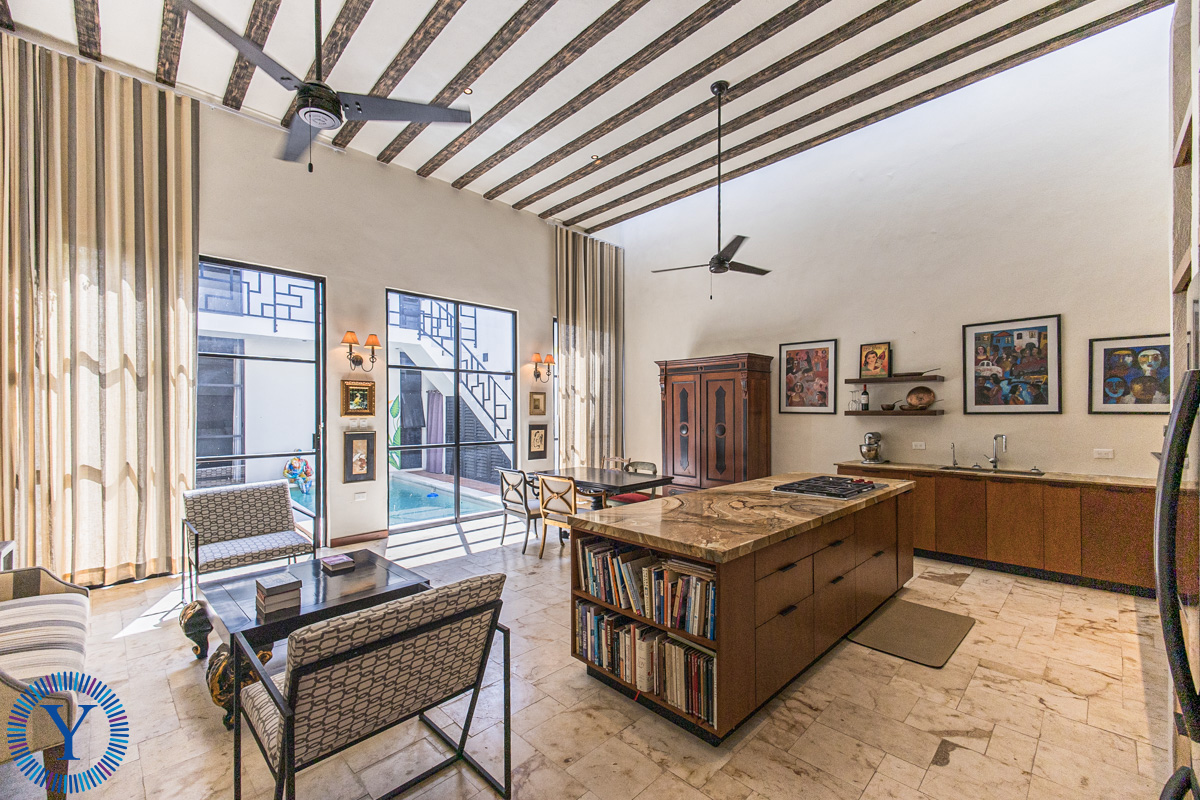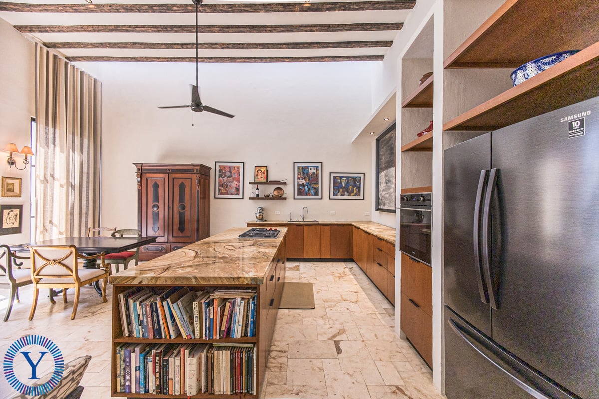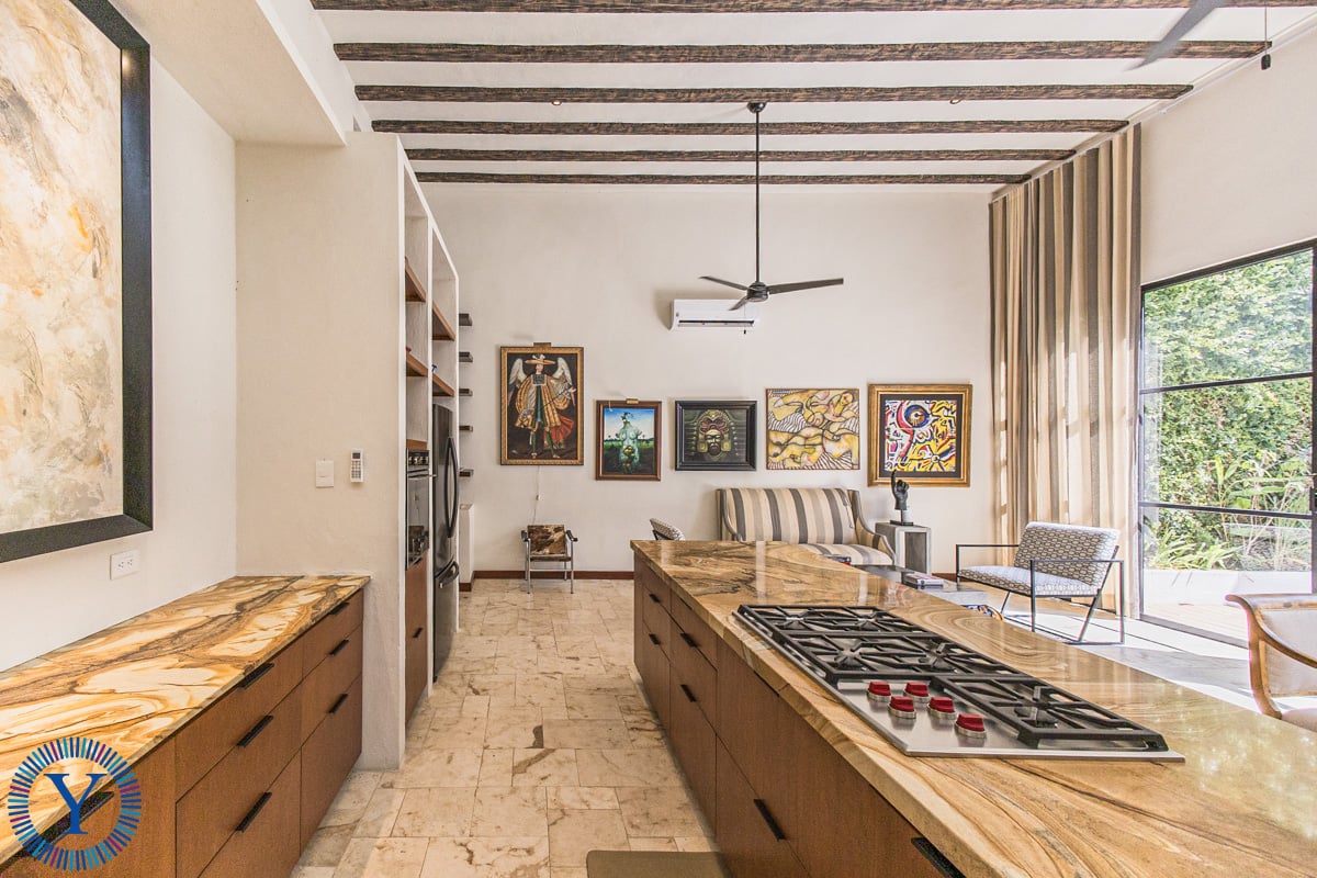 The sleek beauty is admirable in the moment that you step inside with crema Maya floors, high ceilings, custom cabinetry and iron work throughout the property.