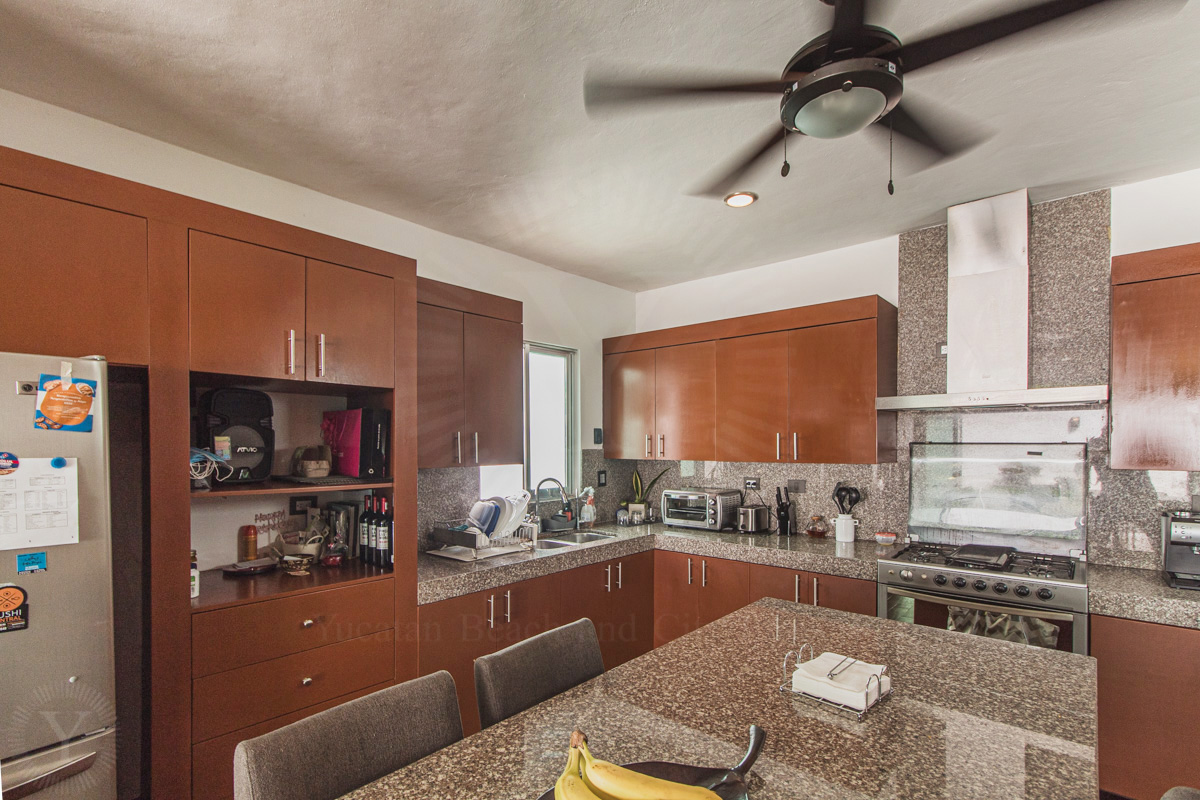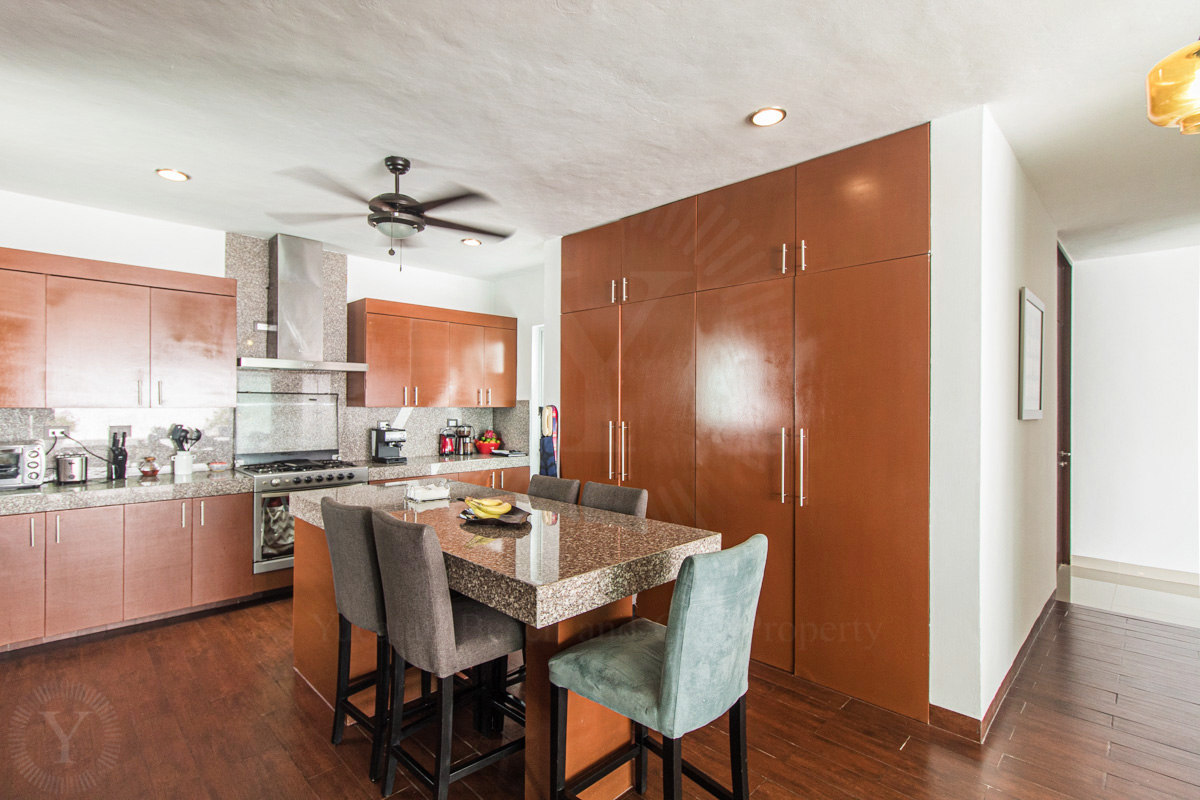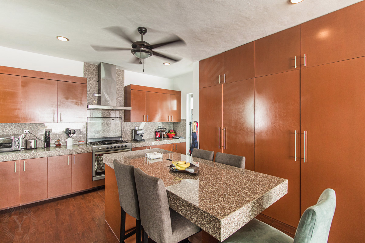 - Equipped kitchen with island and custom cabinets