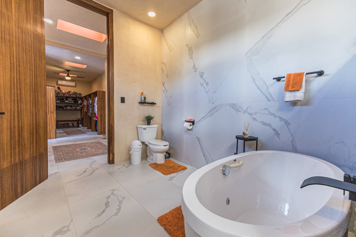 Principal bedroom w/ full bath, bath tub, and large walk-in closet
