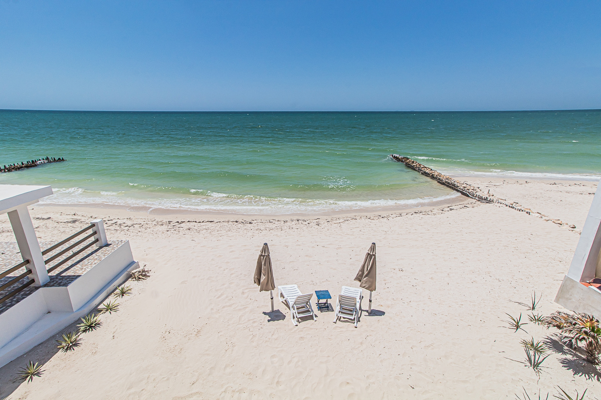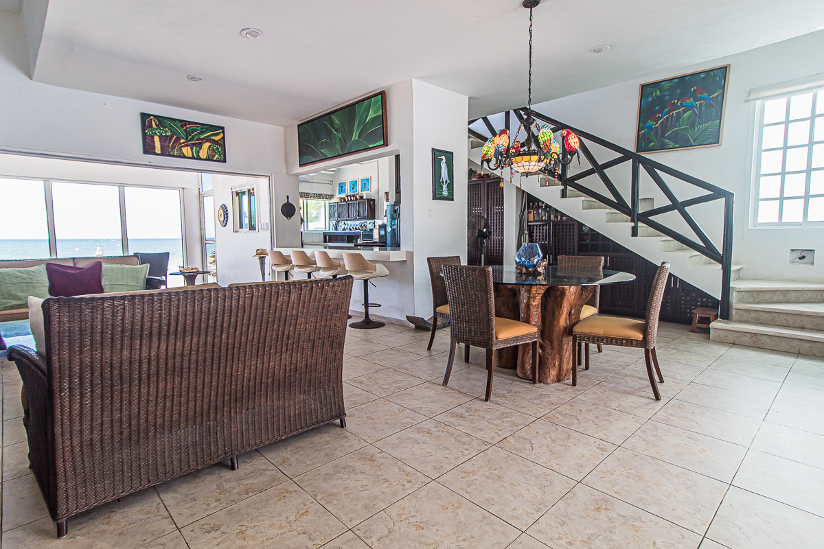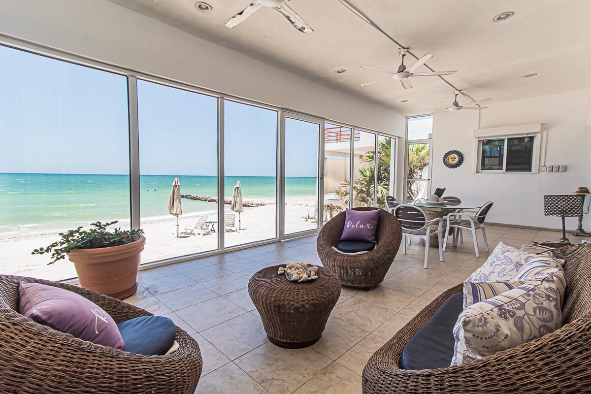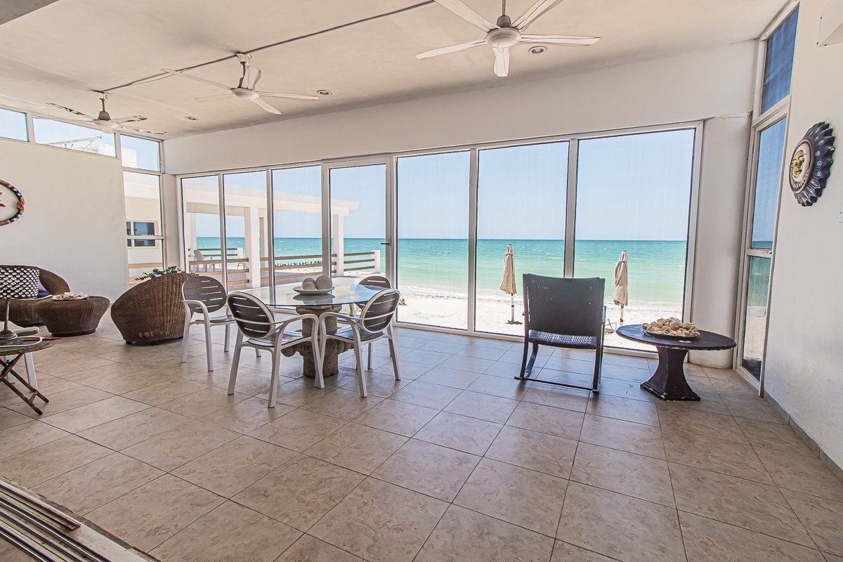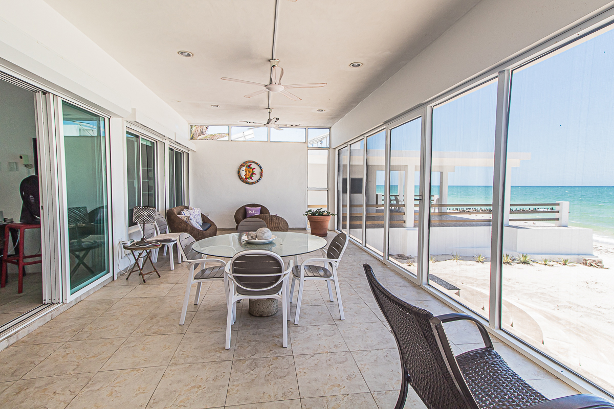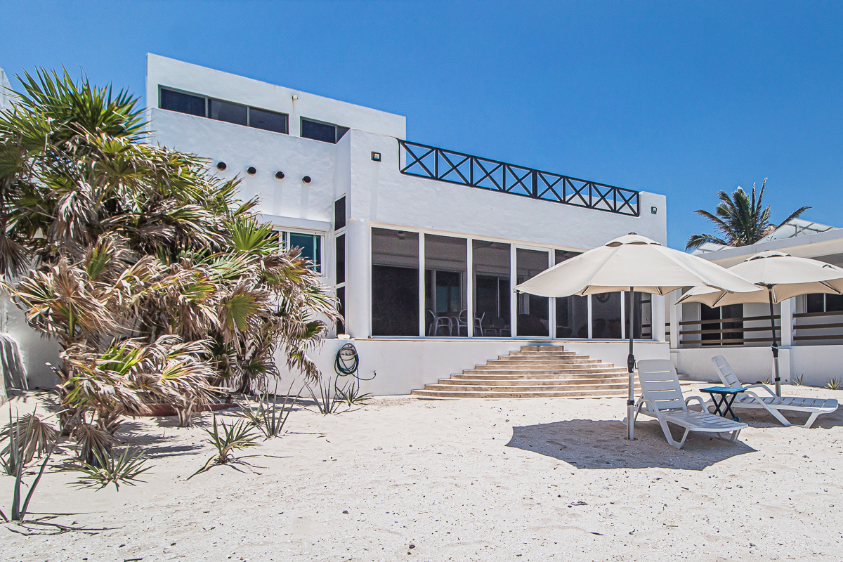 Beachfront on the Emerald Coast of the Yucatan, Casa Kukulkan is distinguished by its breathtaking views from the 10 meter wide screened terrace perfect for enjoying the soothing ocean breezes and viewing the vibrant sunset.