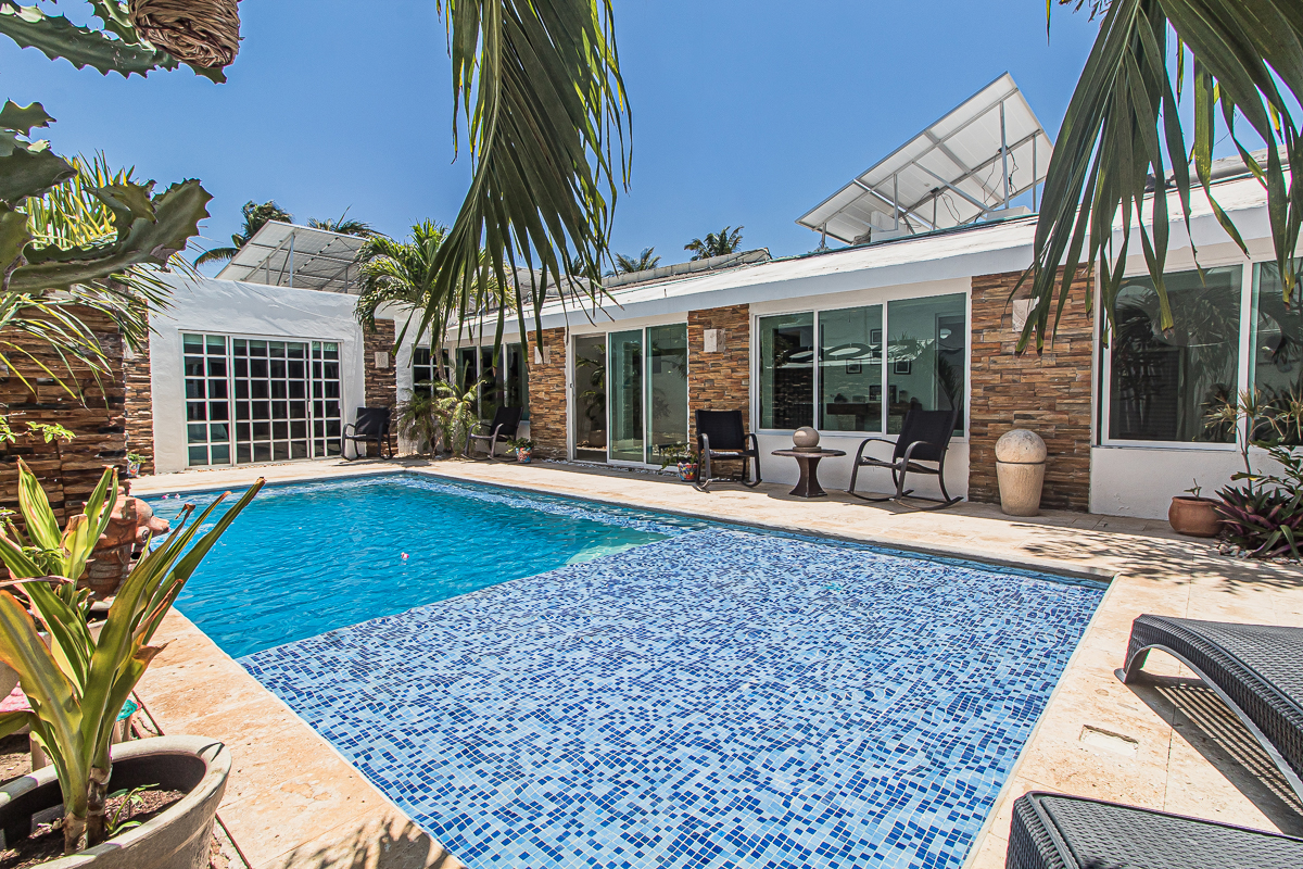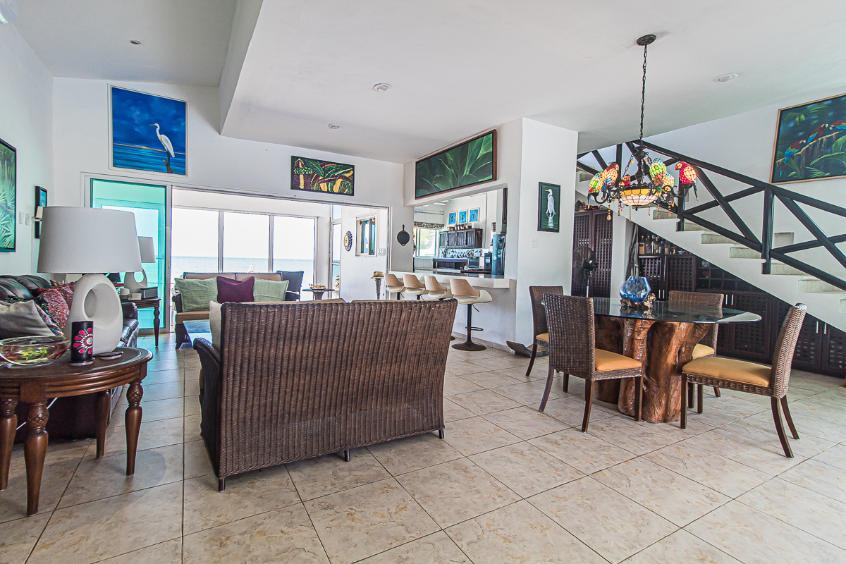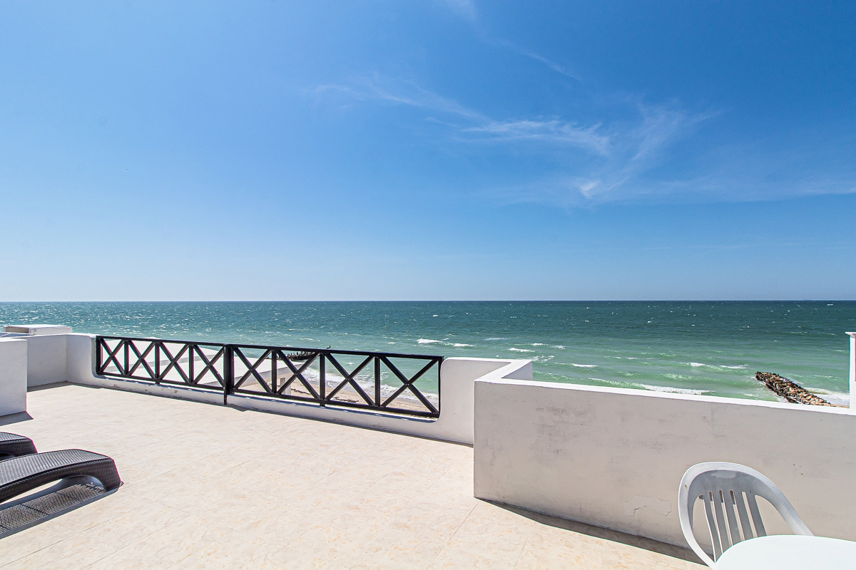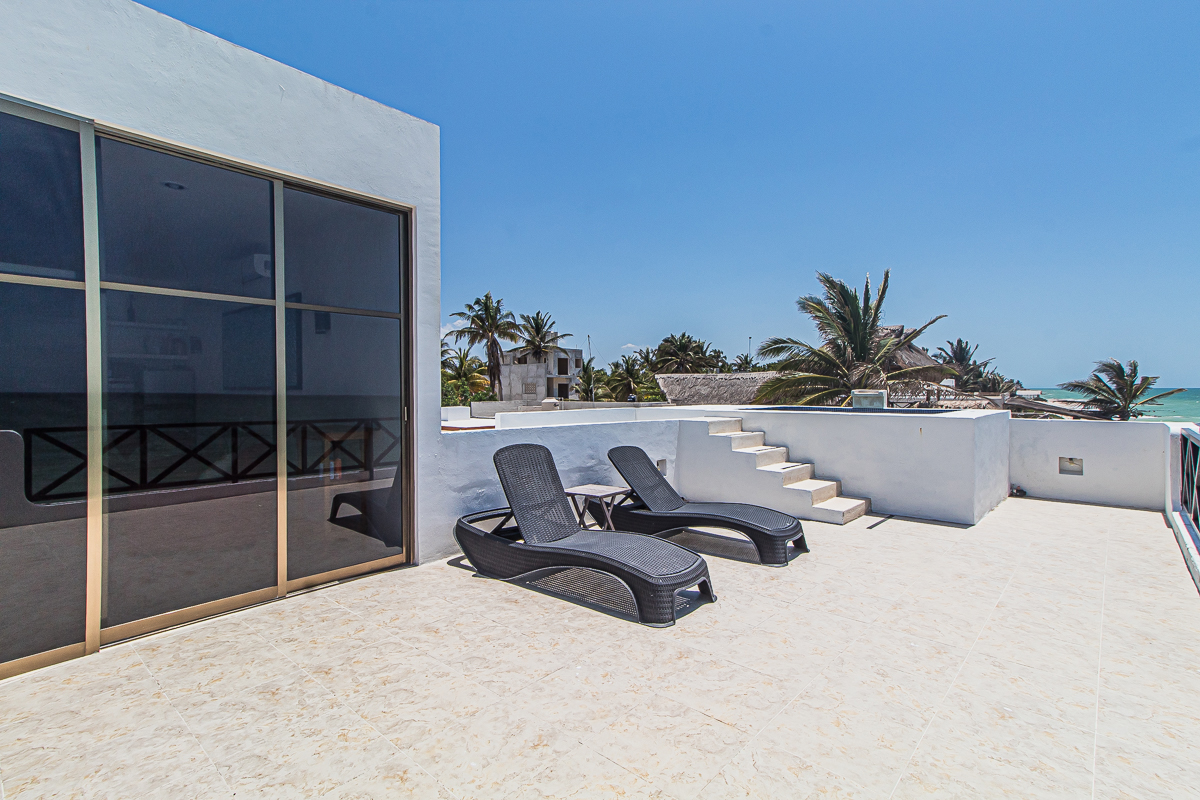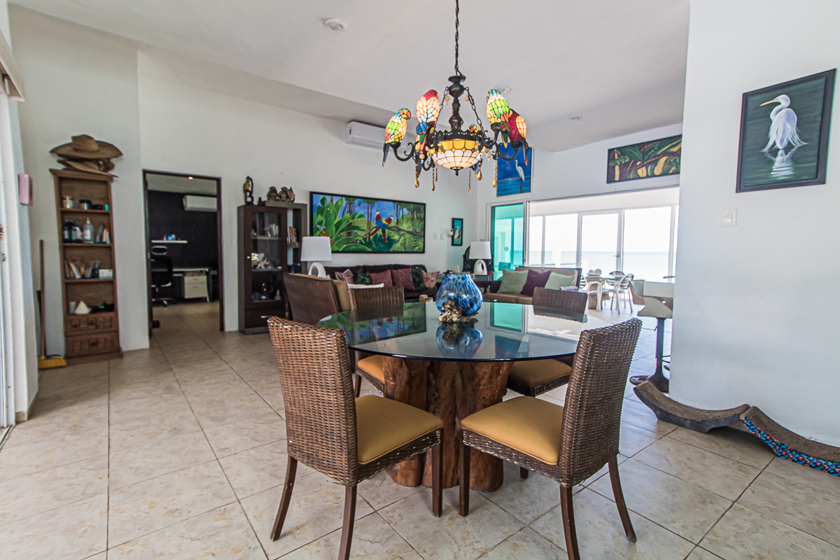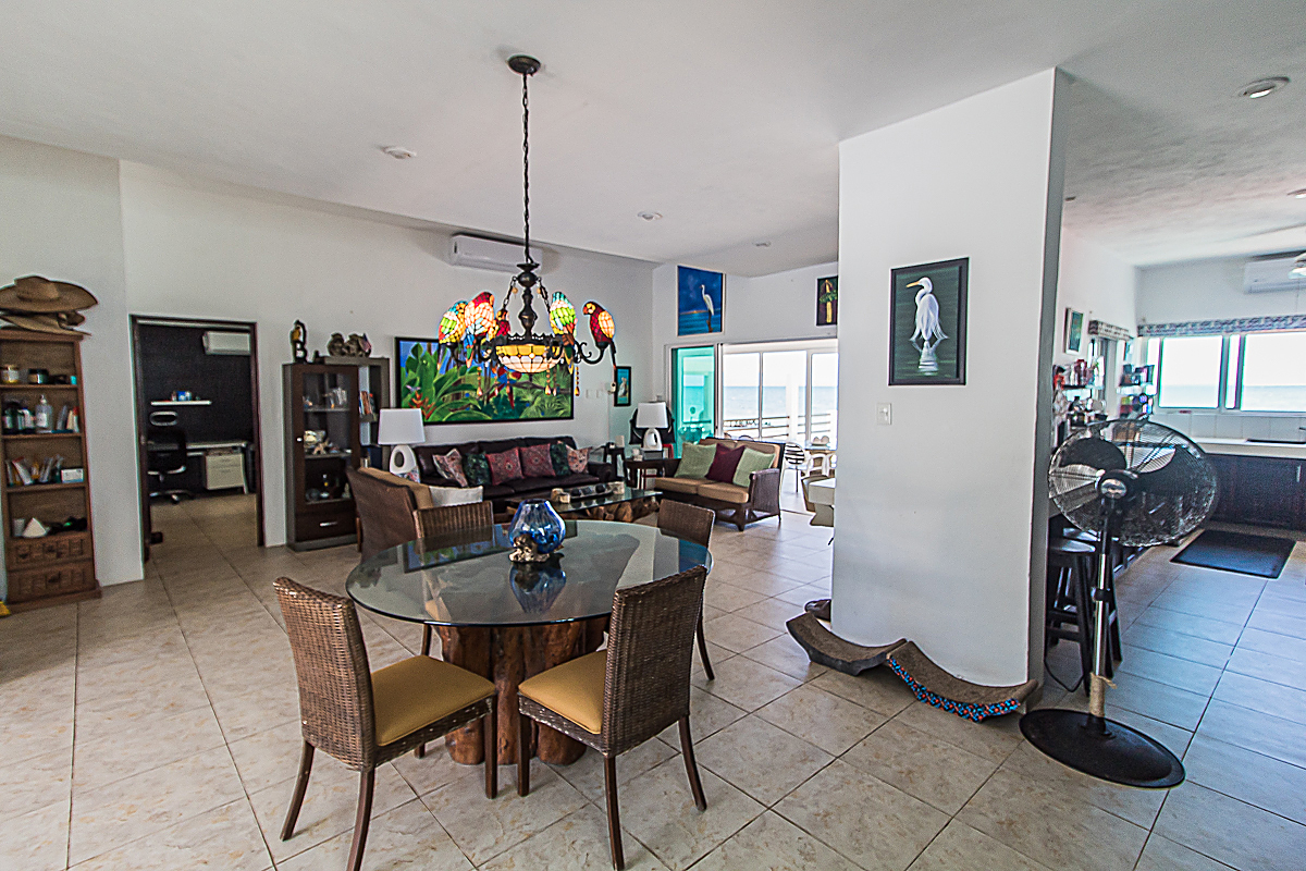 Beachfront on the Emerald Coast of the Yucatan, Casa Kukulkan is distinguished by its breathtaking views from the 10 meter wide screened terrace perfect for enjoying the soothing ocean breezes and viewing the vibrant sunset.