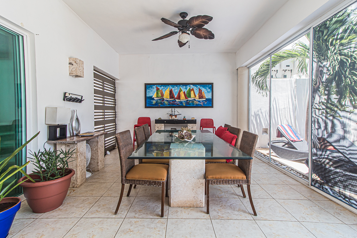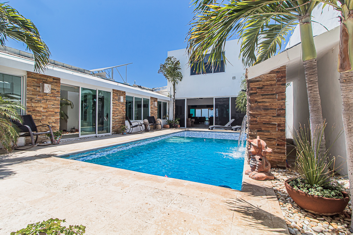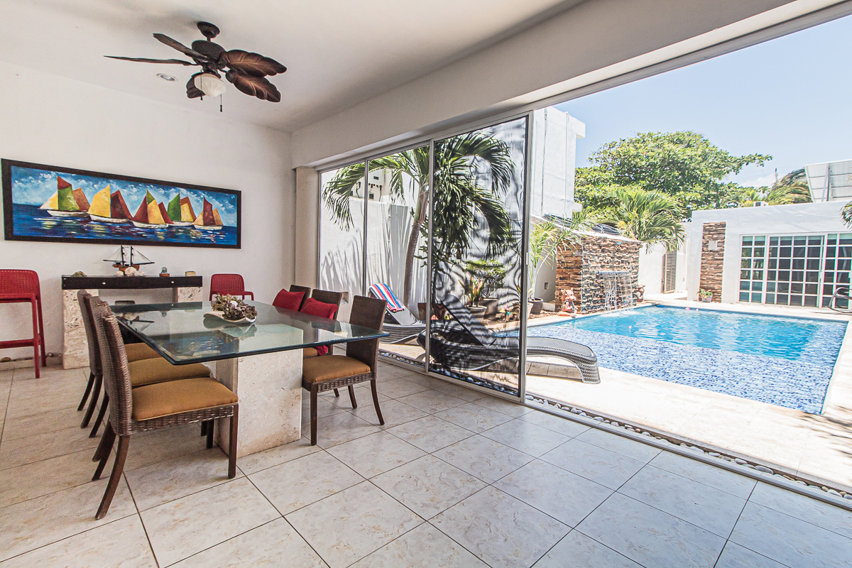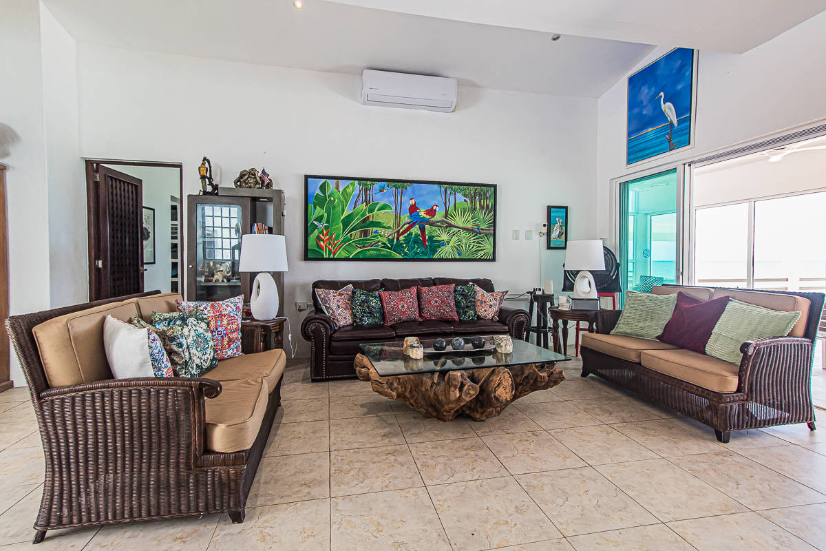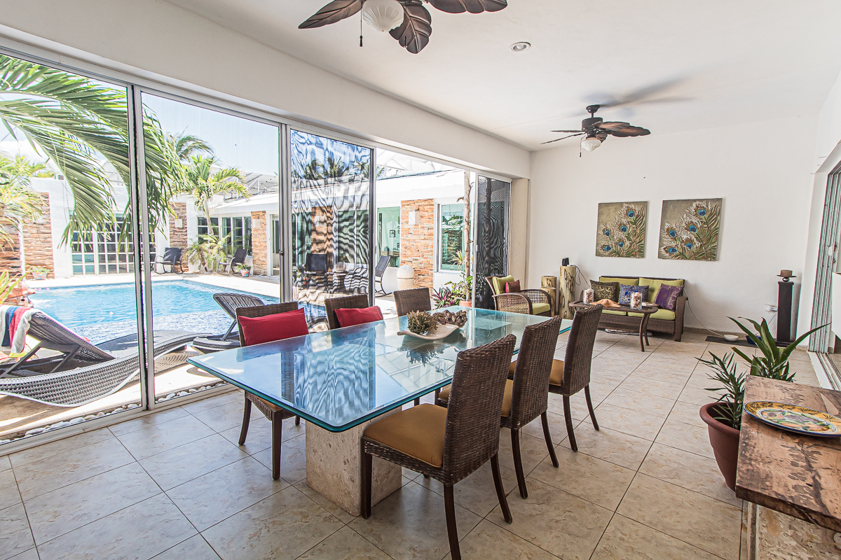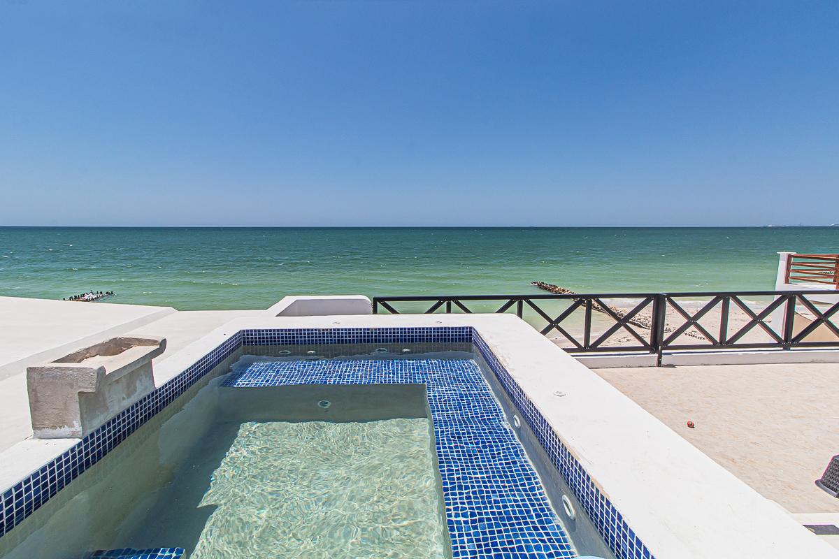 Beachfront on the Emerald Coast of the Yucatan, Casa Kukulkan is distinguished by its breathtaking views from the 10 meter wide screened terrace perfect for enjoying the soothing ocean breezes and viewing the vibrant sunset.
