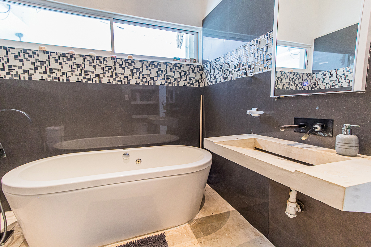 The property’s second floor features a private retreat featuring a bedroom with full bath, living room, mesmerizing views of the emerald waters, and private terrace with a rooftop jacuzzi.