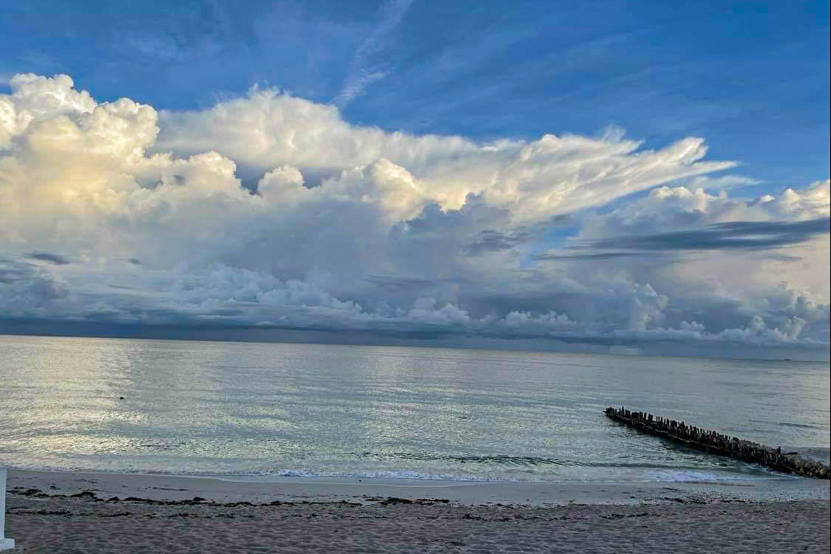 The beach in front of the home is deep and offers ample space to relax beachside and go for a swim.