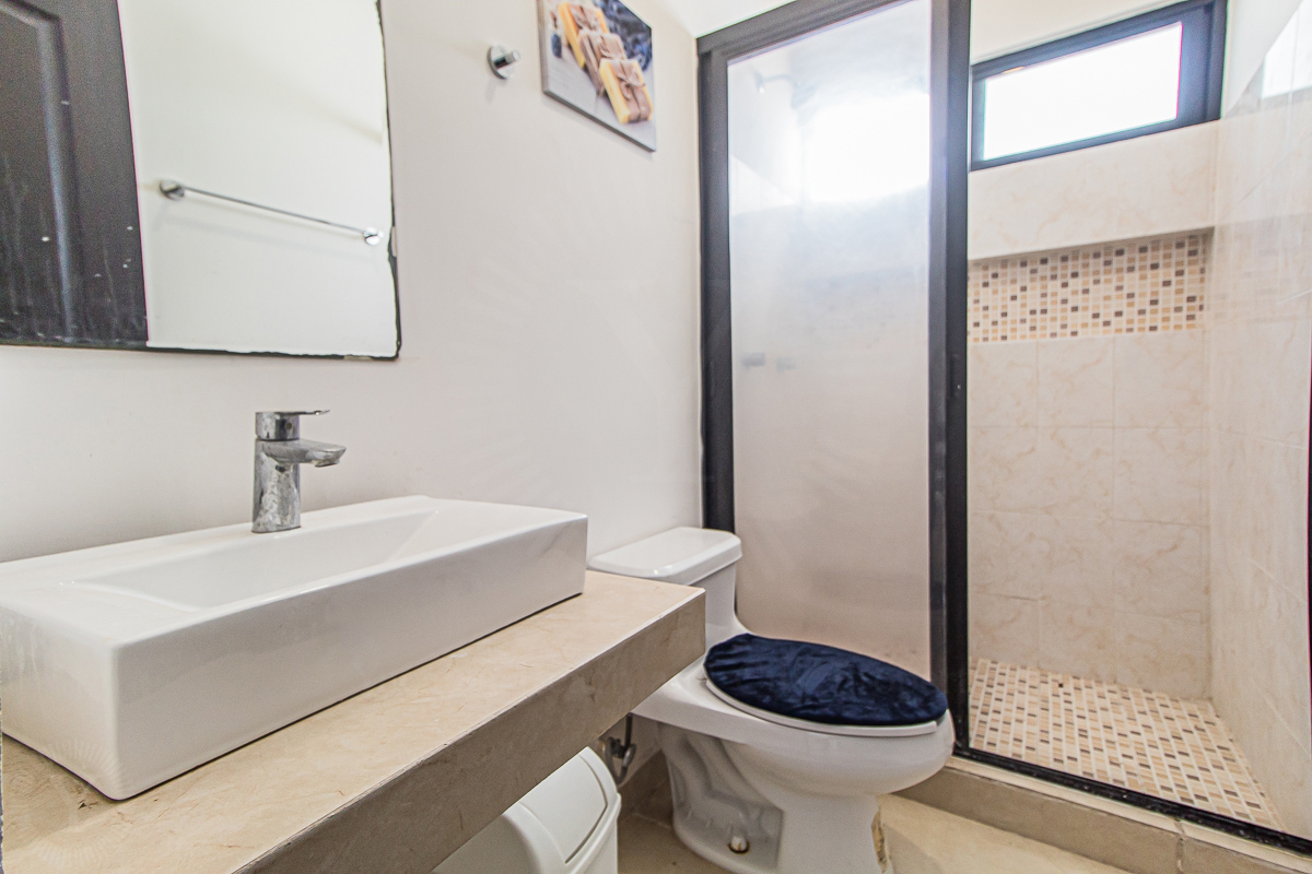 This home features 3 bedrooms, 2 bathrooms, double high ceiling living-dining room, kitchen with island, rear garden, swimming pool w/filtration and parking area.