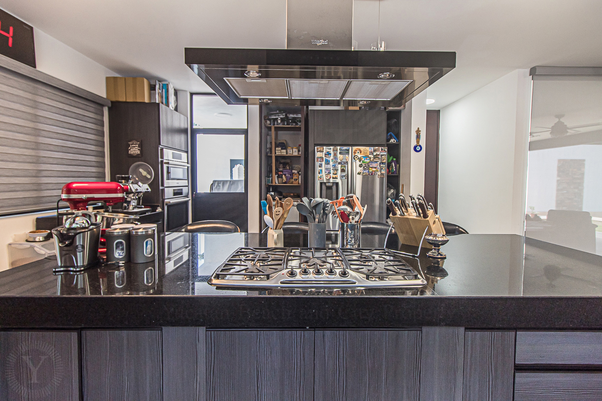 The ground level unfolds into an exquisite open concept living, blending the living room, dining room and spacious kitchen into one harmonious space. The kitchen is equipped with top-of-line appliances, a spacious pantry, and a grand island adorned with granite countertops. Natural light floods the area through elegant sliding doors and windows, enriching the ambiance and connecting the indoors with the tranquil outdoors.