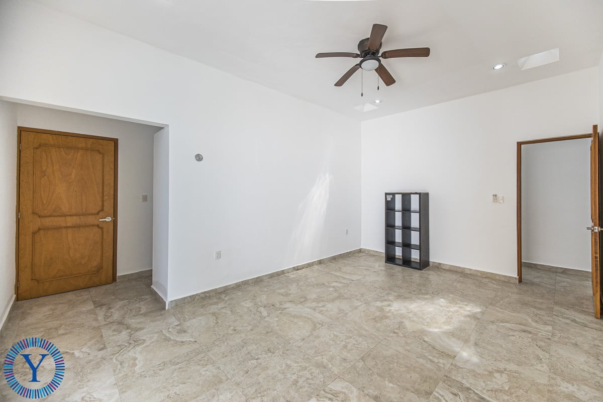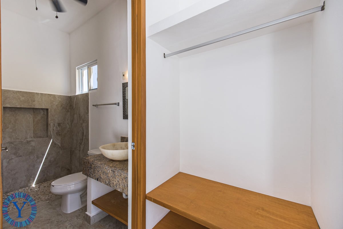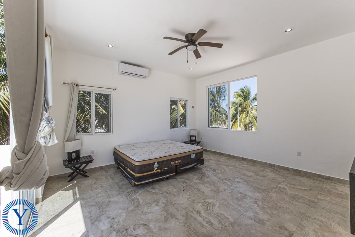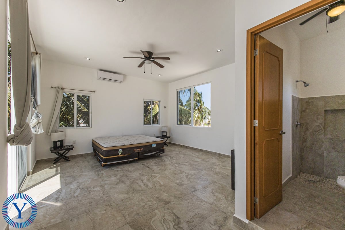 The two downstairs bedrooms are very spacious and each have their own walk-in closets and the upstairs bedroom has partial water views and a large private terrace.
