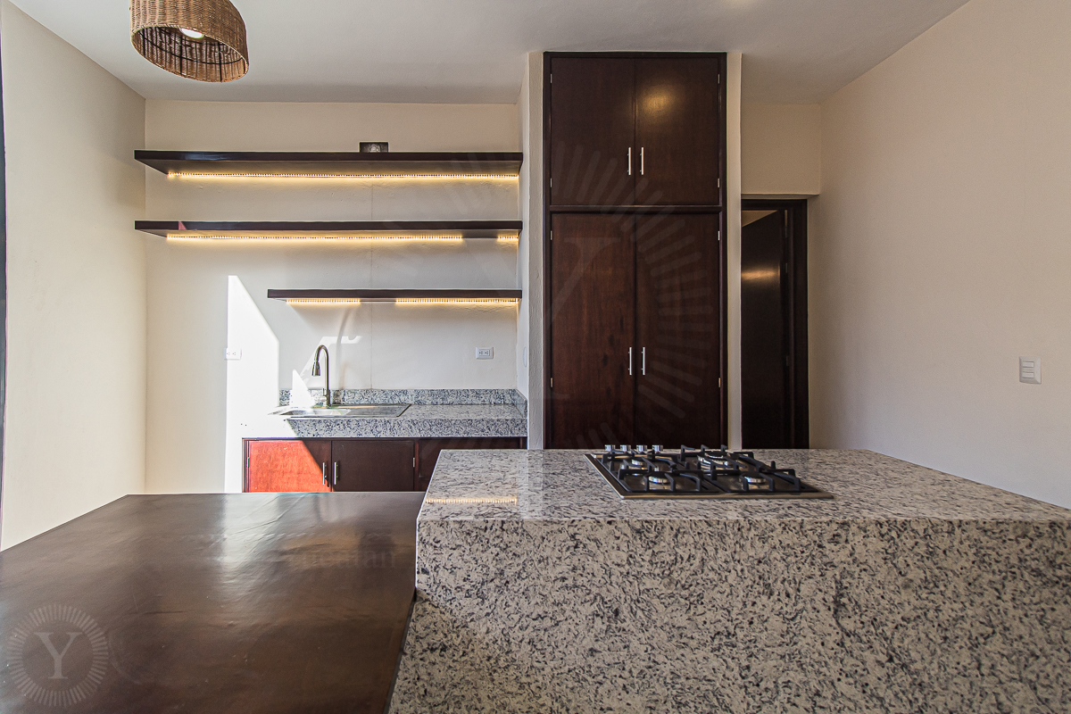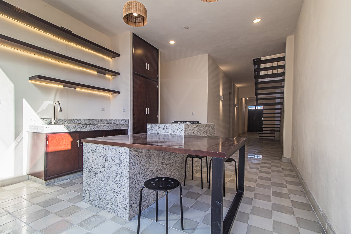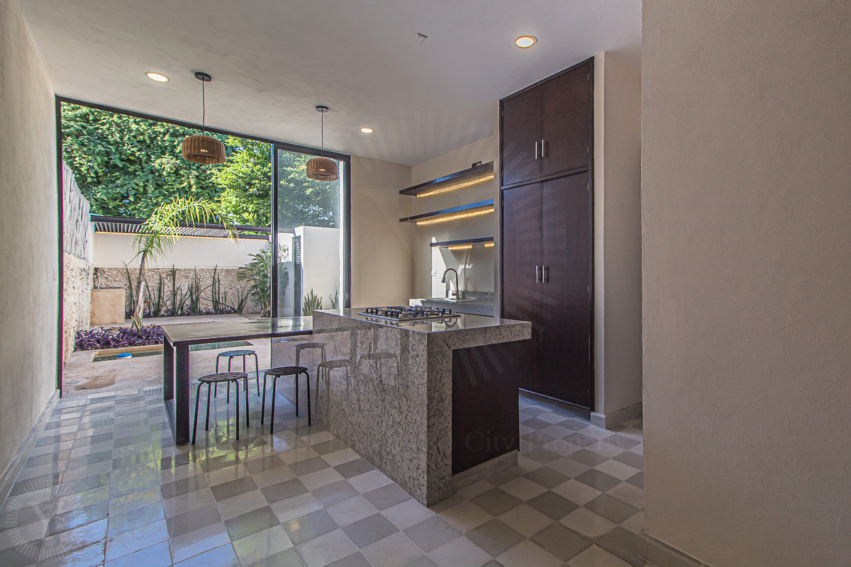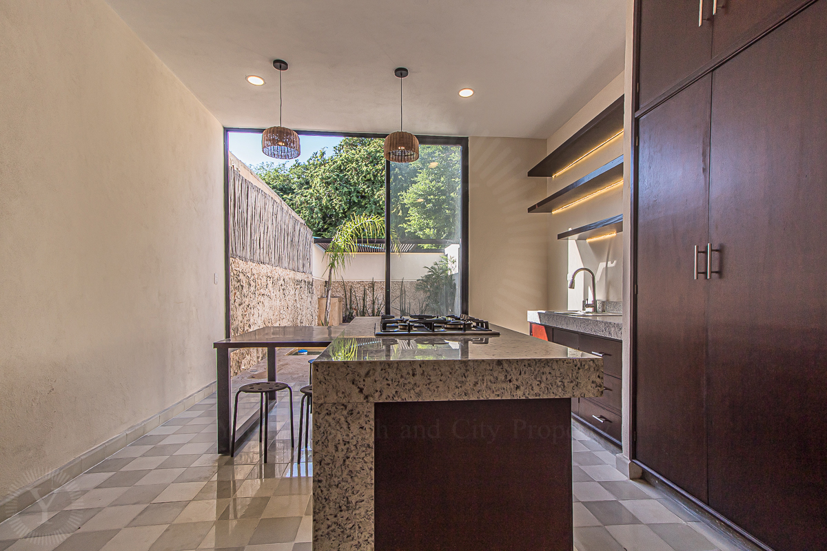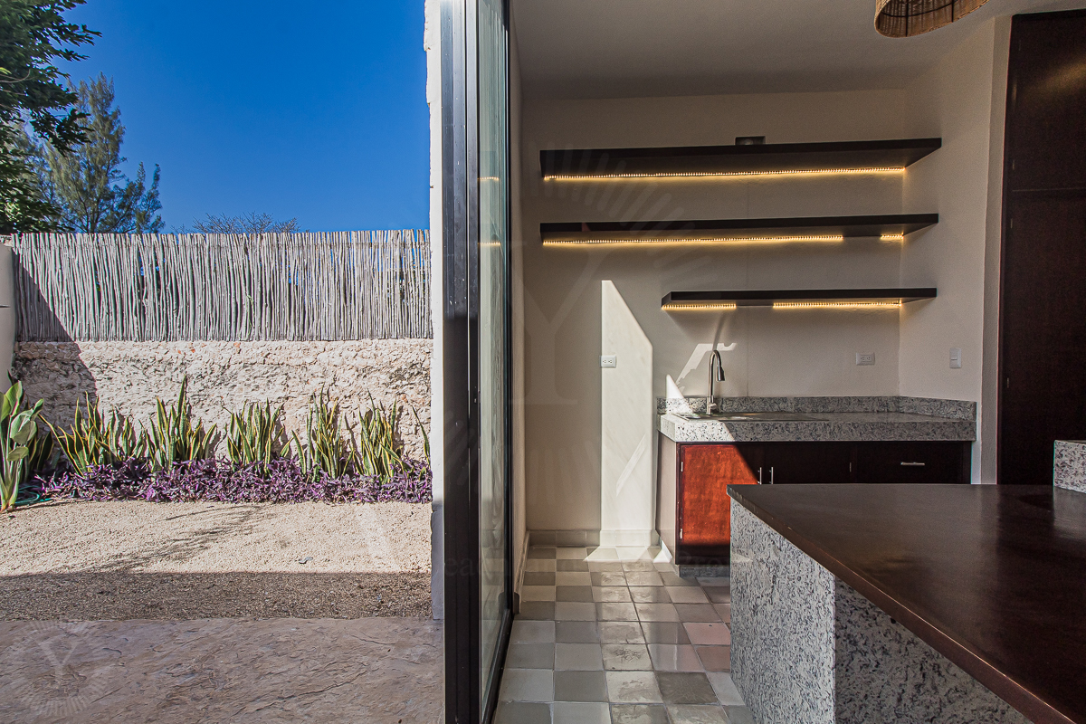 Recently restored, Casa Palmita welcomes with a foyer, living room, guest bedroom with a full bath, closet and indoor garden. Centered in the house, there is a kitchen with an island, pantry and guest bath.