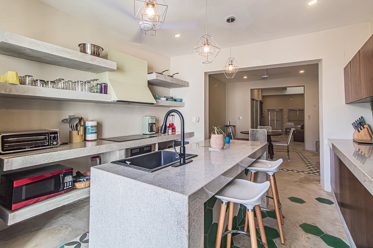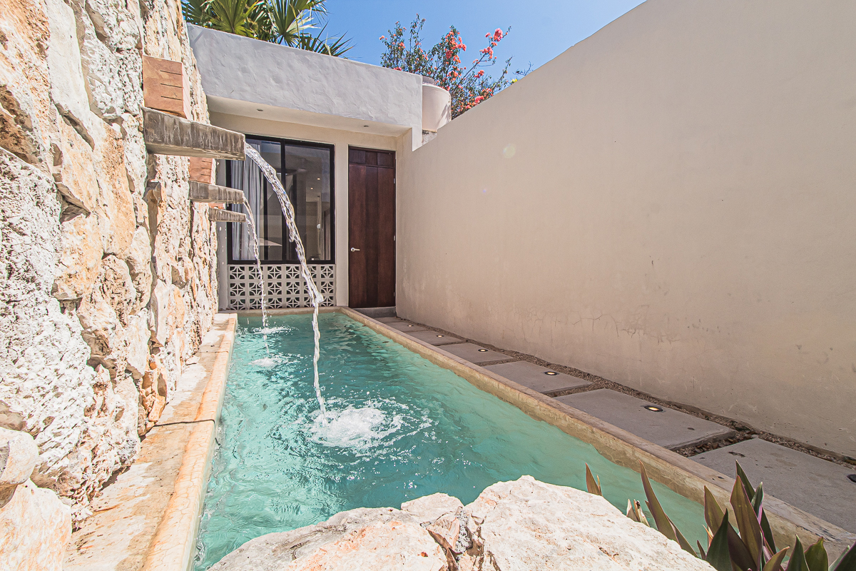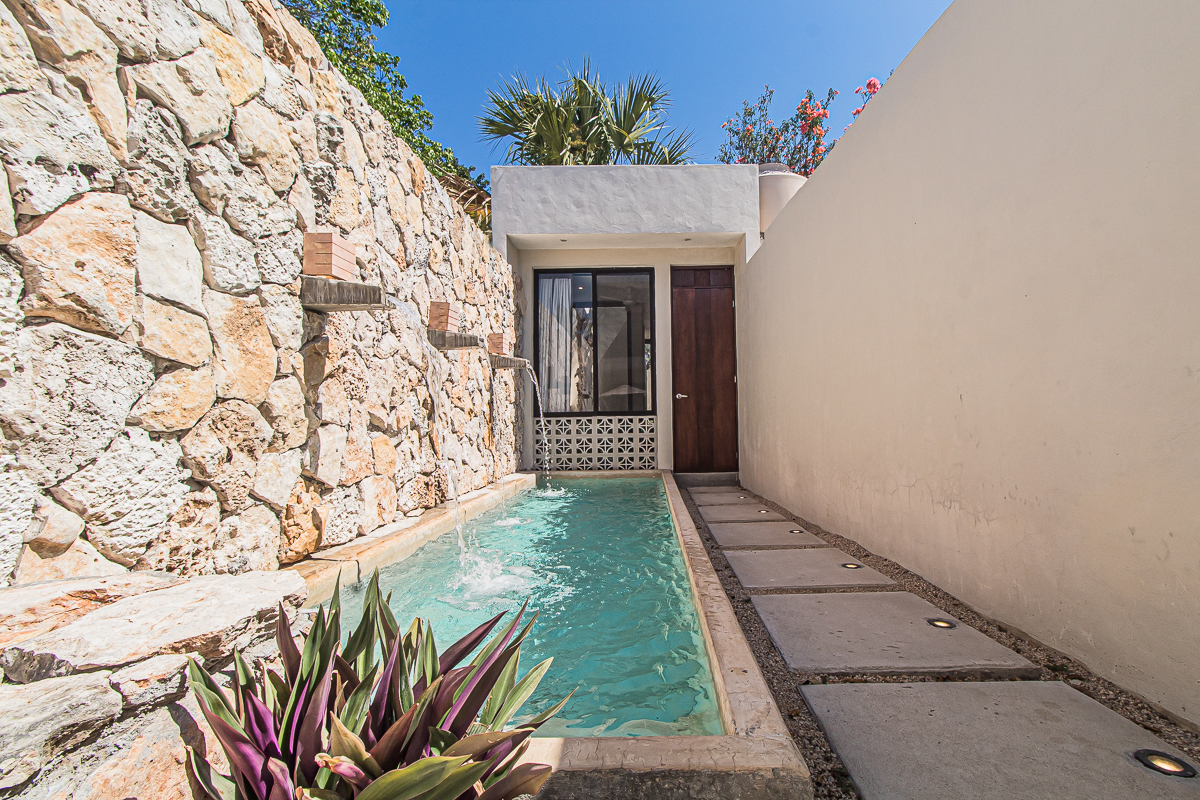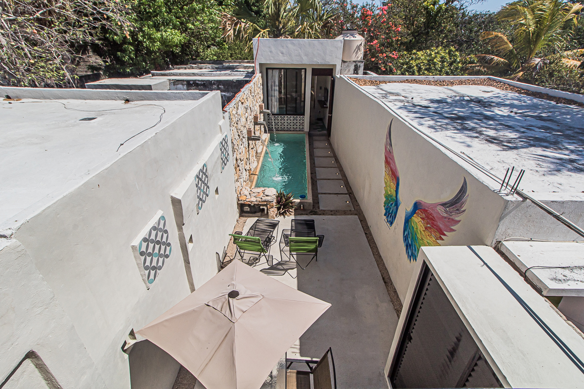 Casa Piña Dorada has a serene swimming pool and terrace area where relaxation and leisure awaits. A charming casita with a full bath and interior gardens create a perfect guest accommodation, bathed in natural light.