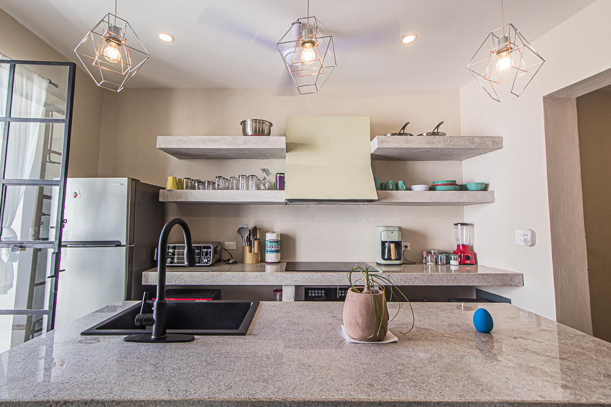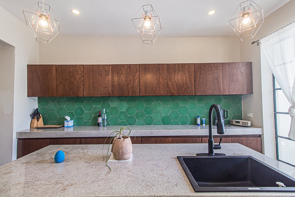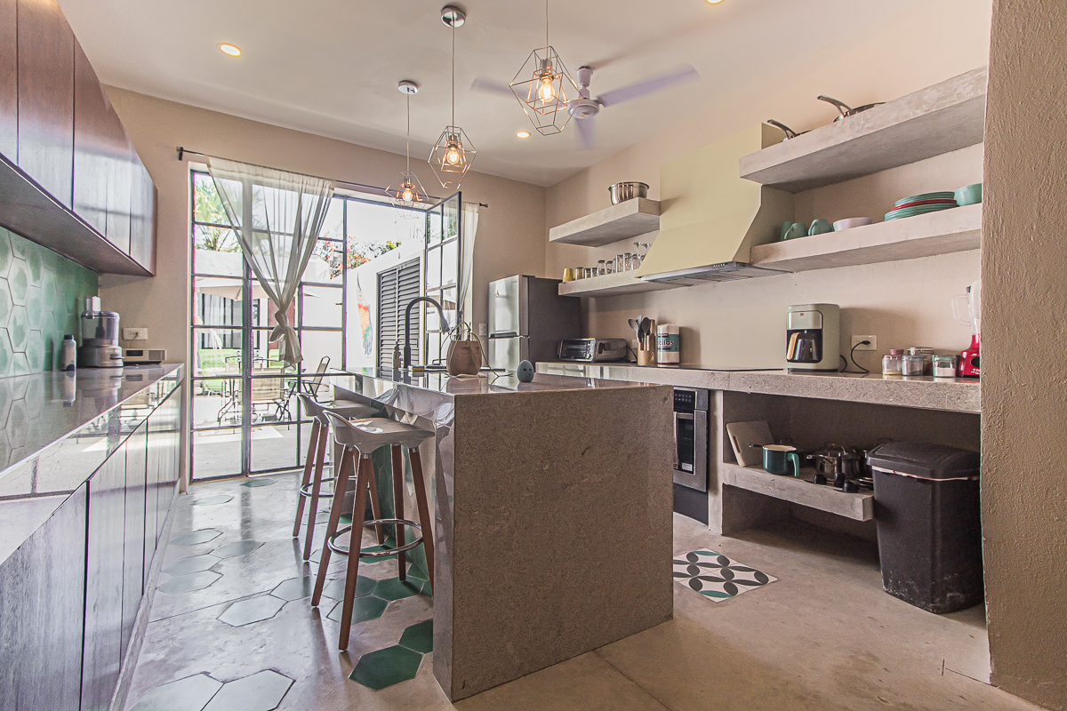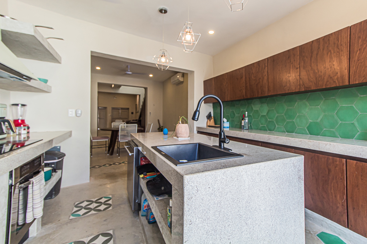 Casa Piña Dorada has a serene swimming pool and terrace area where relaxation and leisure awaits. A charming casita with a full bath and interior gardens create a perfect guest accommodation, bathed in natural light.