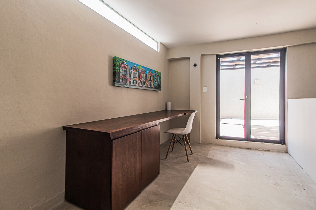 Venture upstairs to discover the principal bedroom, featuring a spacious bedroom, full bath and an exclusive terrace– a tranquil escape from everyday. This level also boasts a thoughtfully designed office space next to the other second floor terrace.