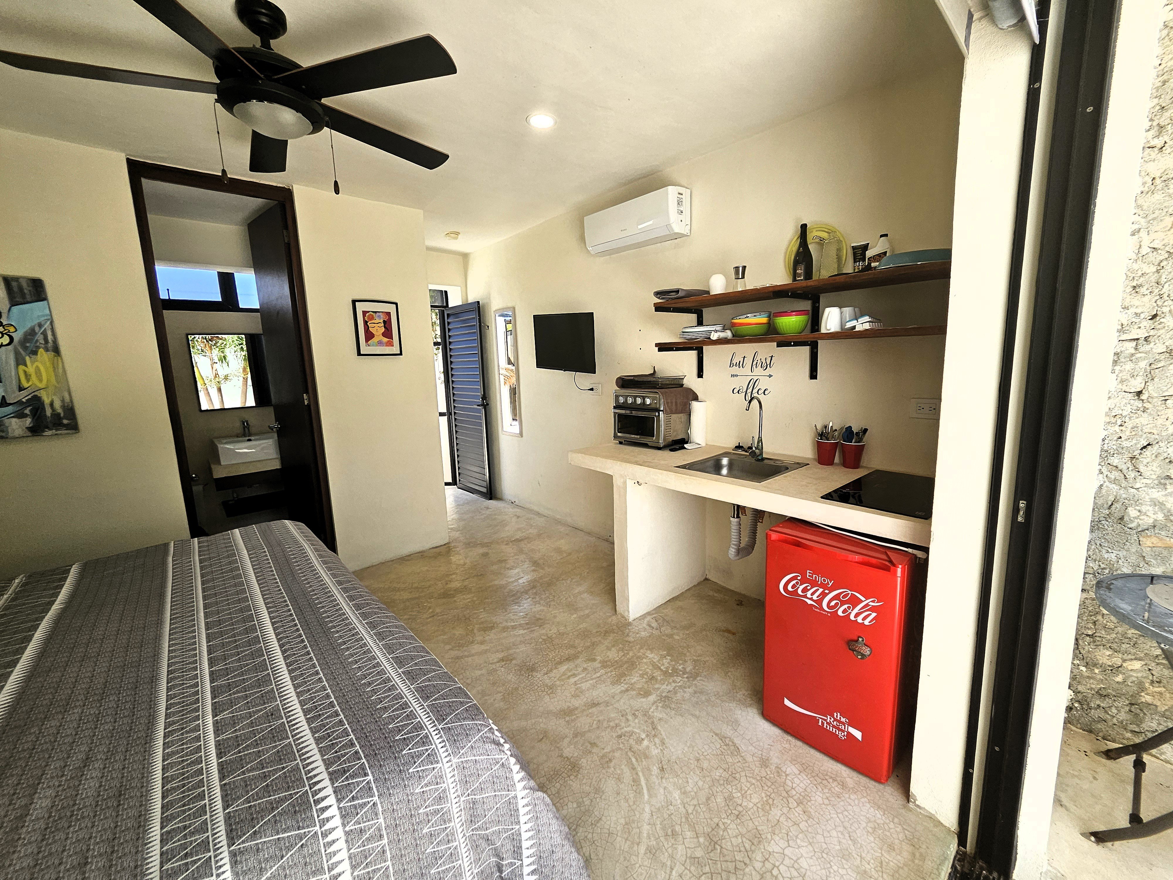 - Guest quarters also equipped with high ceilings, a full kitchenette with a cooktop, and an ensuite bathroom. Built in closet space is abundant.
