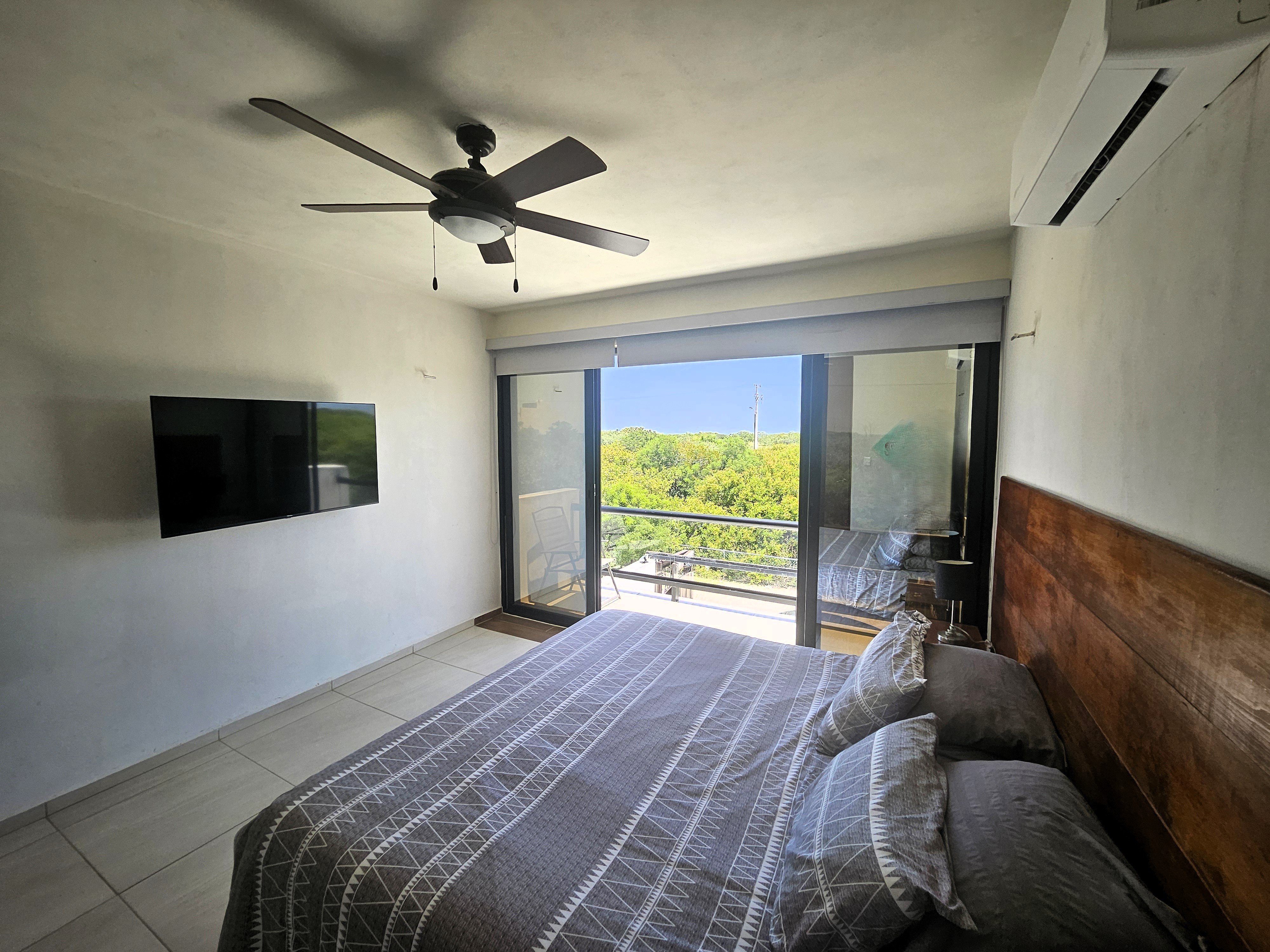 - The comfortable primary bedroom on the second floor features a built-in closet, and an ensuite bathroom as well as scenic ocean views from the private balcony.