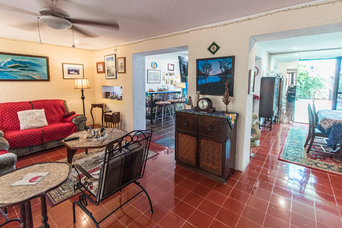 The house is just as functional as it is comfortable with a large bodega with all the equipment of the house including pressurized water, water softener and pool filter. Just off to the side is the service room with full bath that is big enough to be converted to additional living space.