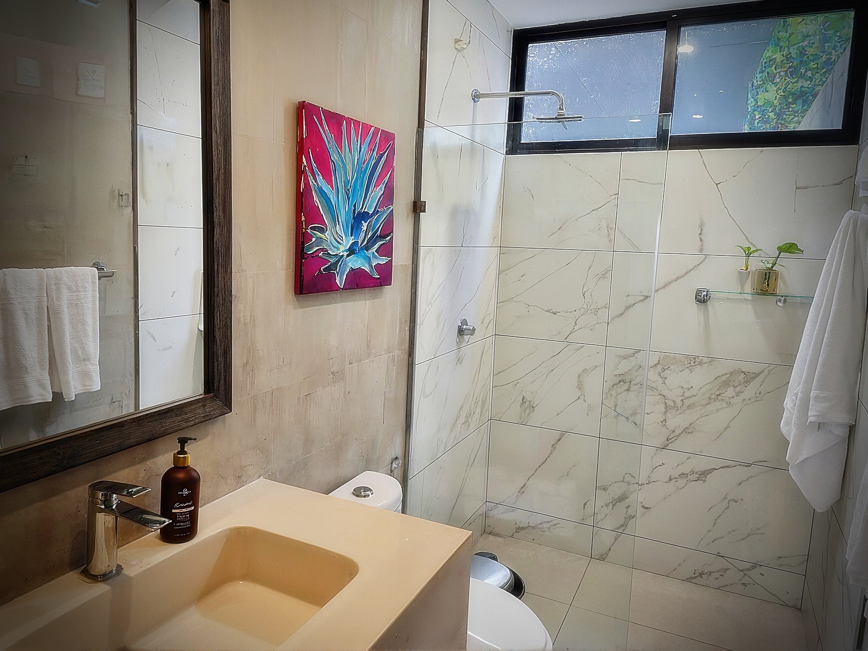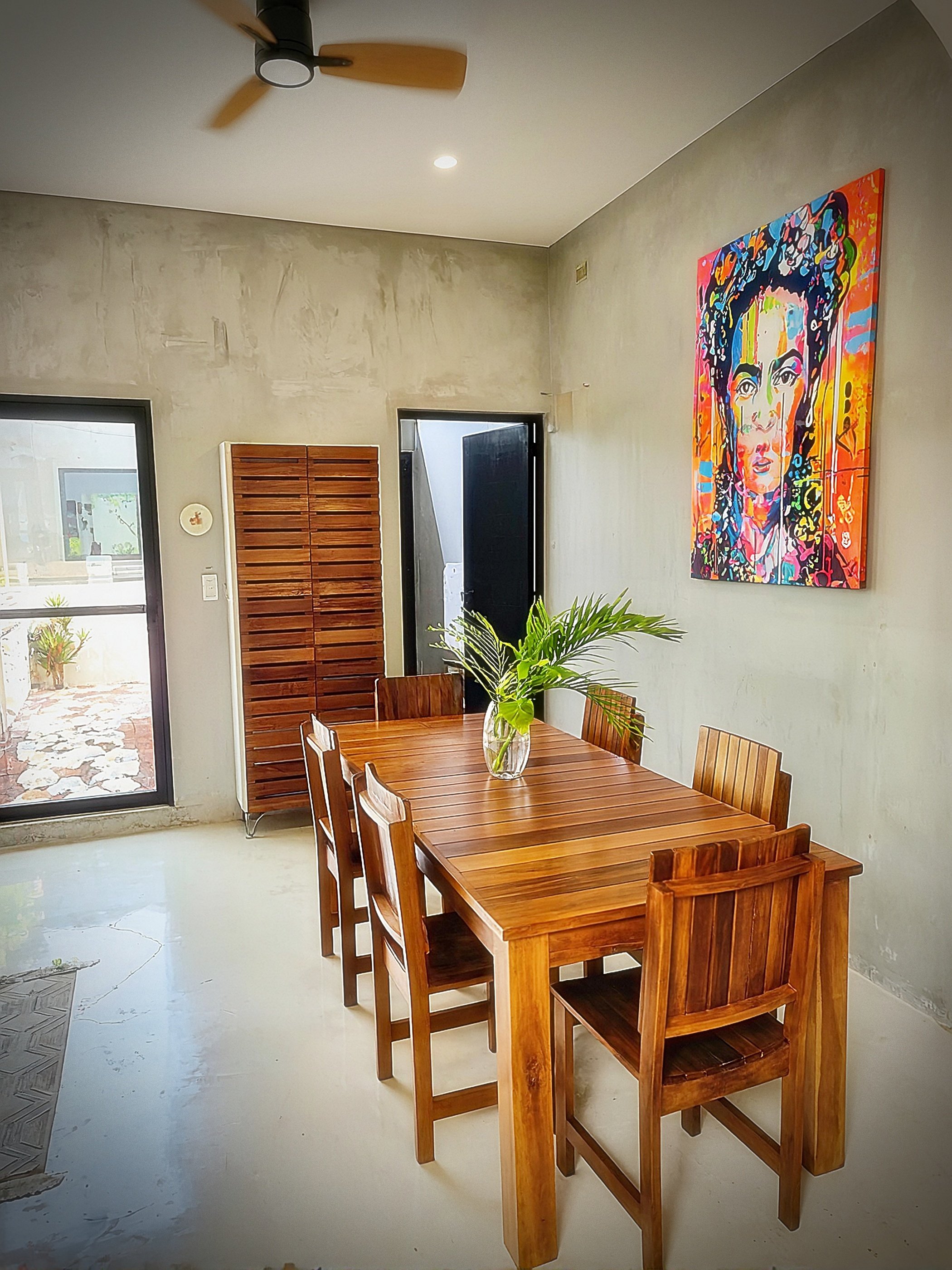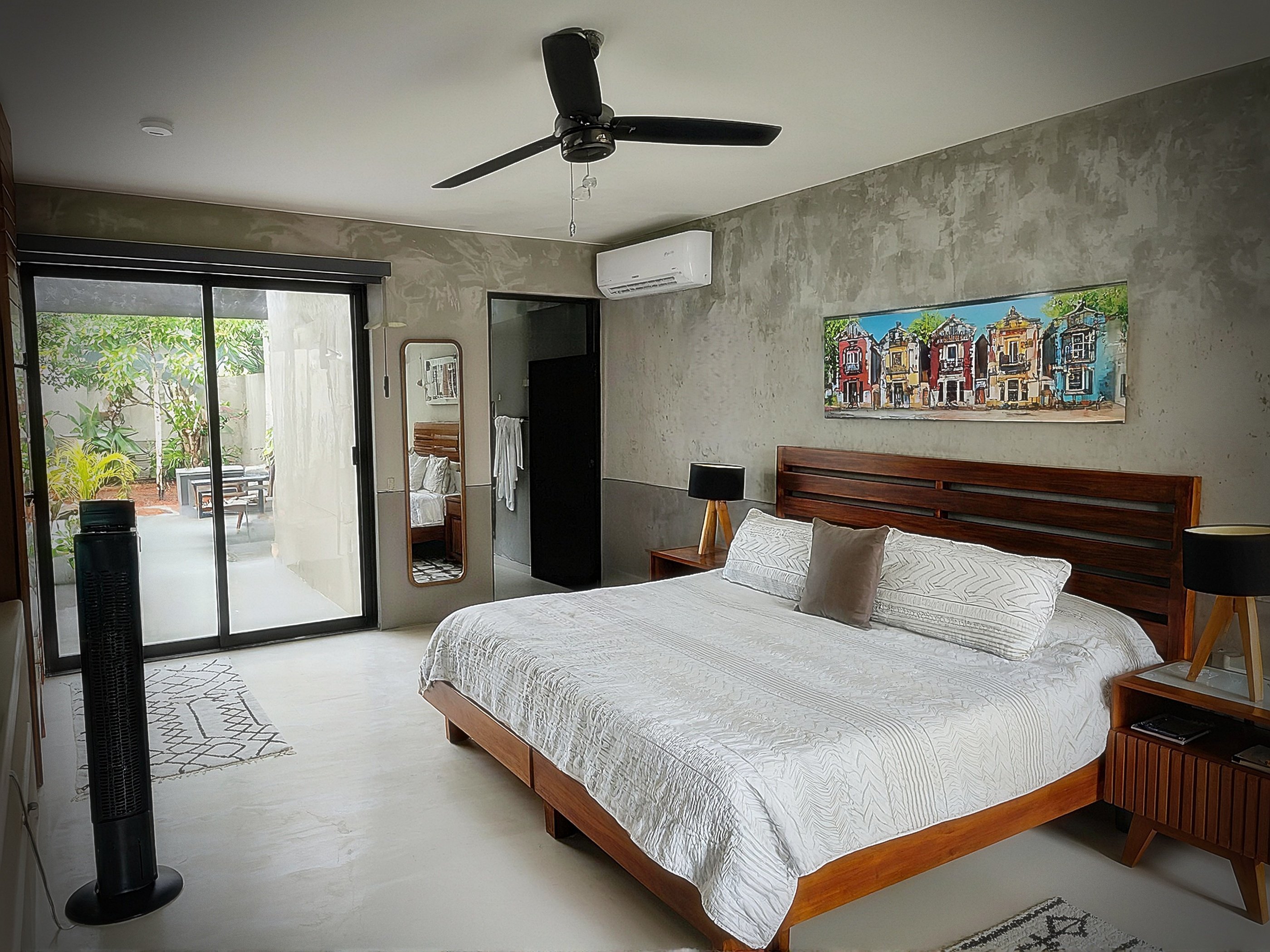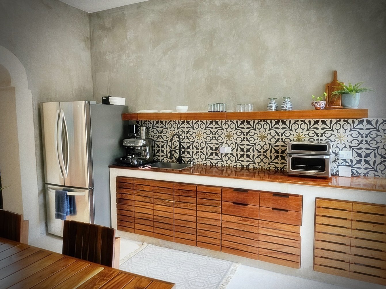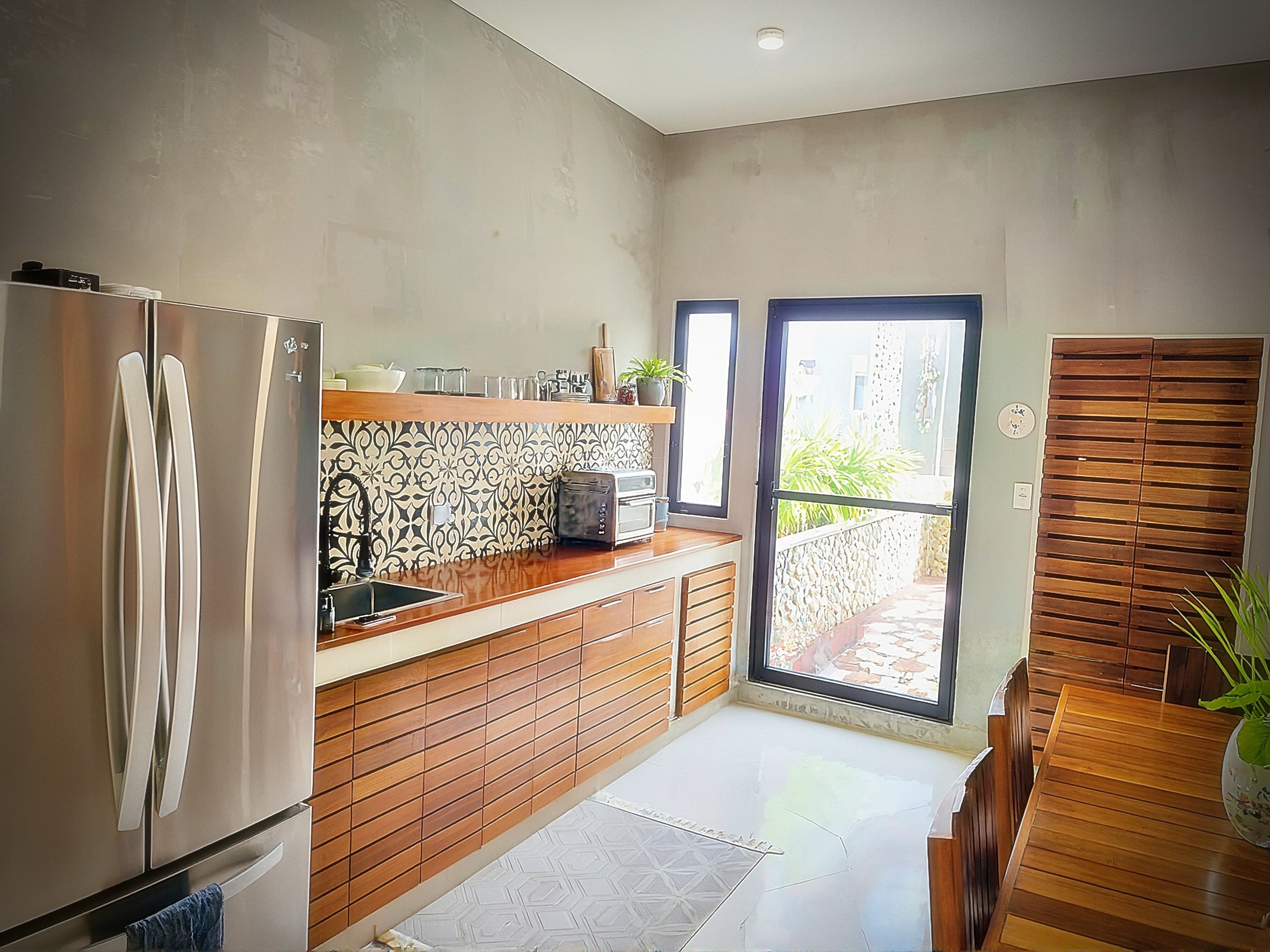 The interiors are elevated by custom Tzalam cabinetry and furniture, complemented by brand new appliances including a French door refrigerator and combination washer/dryer. New ceiling fans circulate the air throughout, while the freshly sealed roof with 7 layer epoxy, mesh, and impermeable coating adds long-term security. Completely new electric and plumbing systems, including a biodigester, provide worry free functionality.