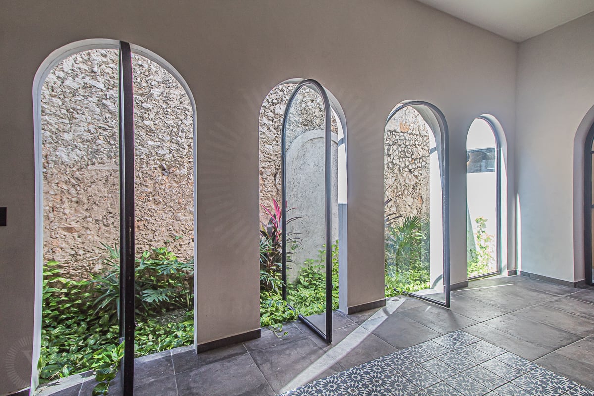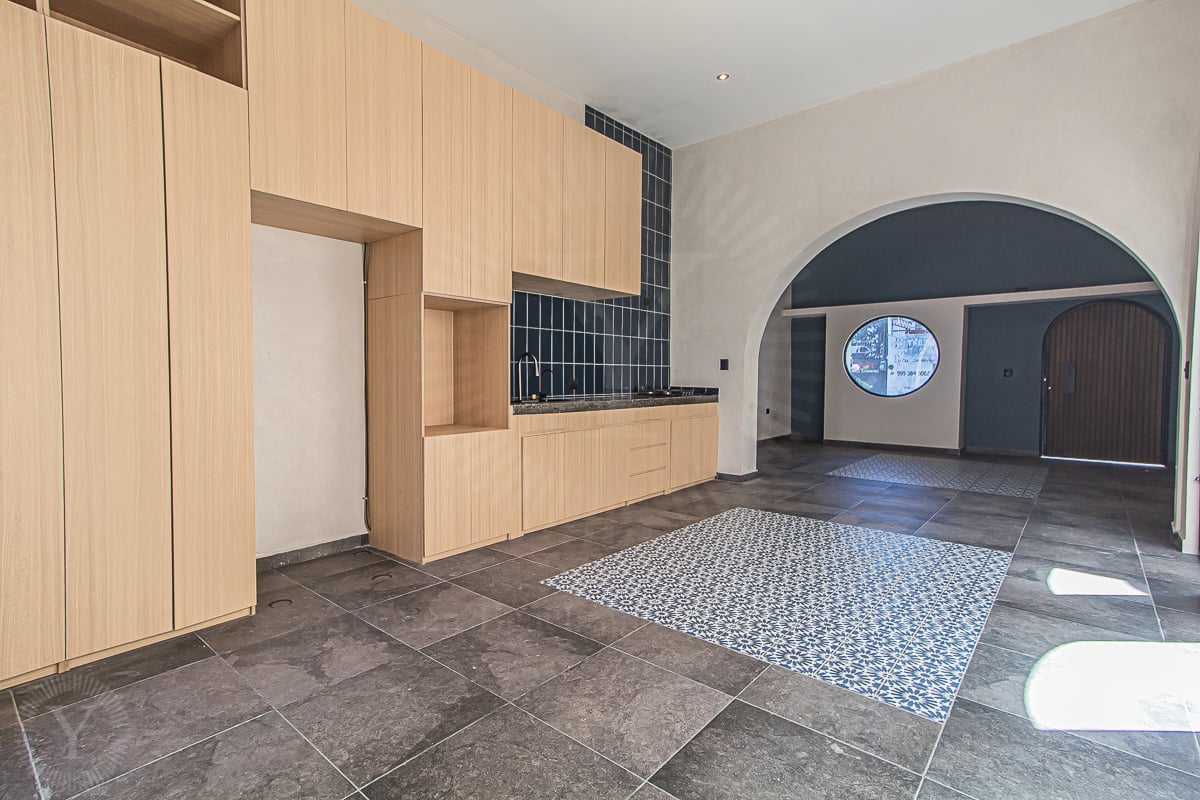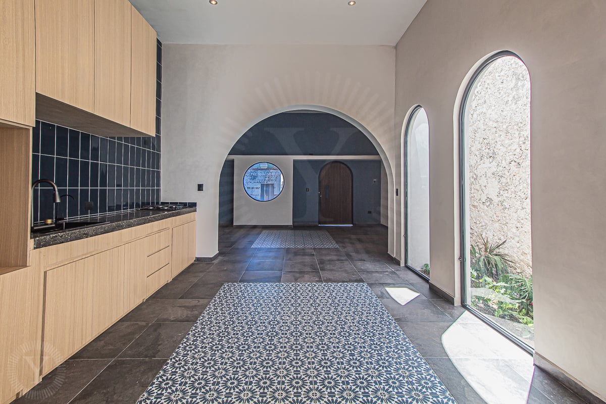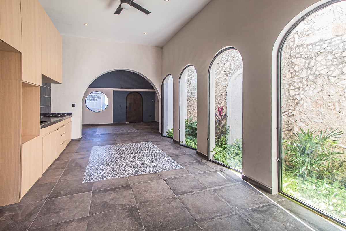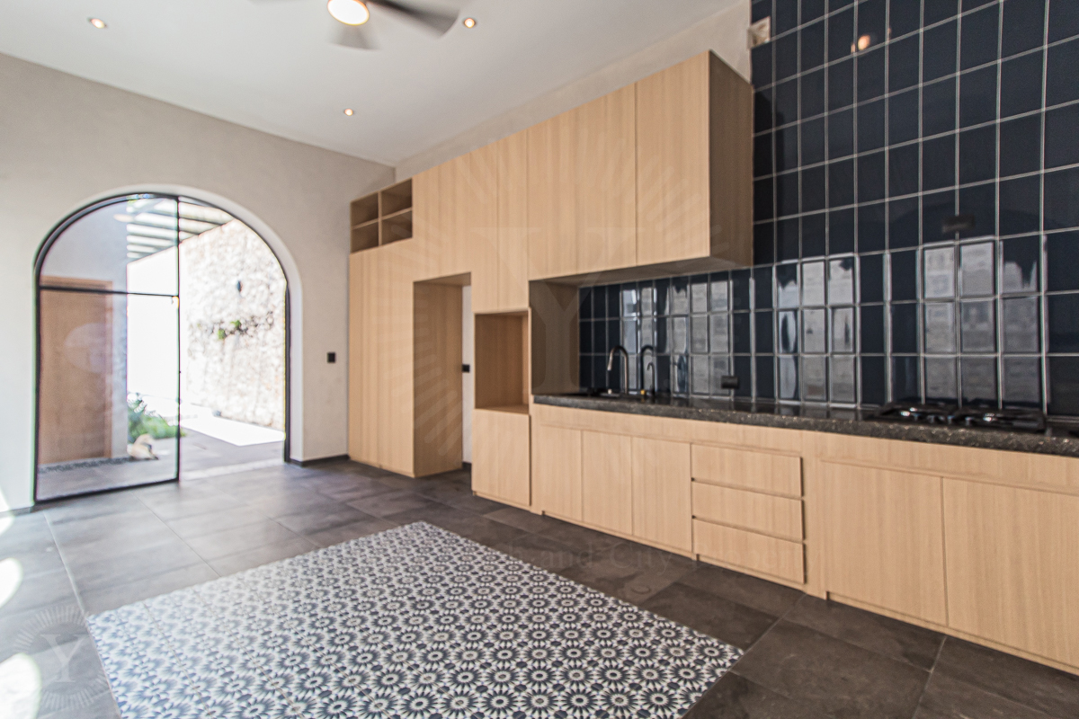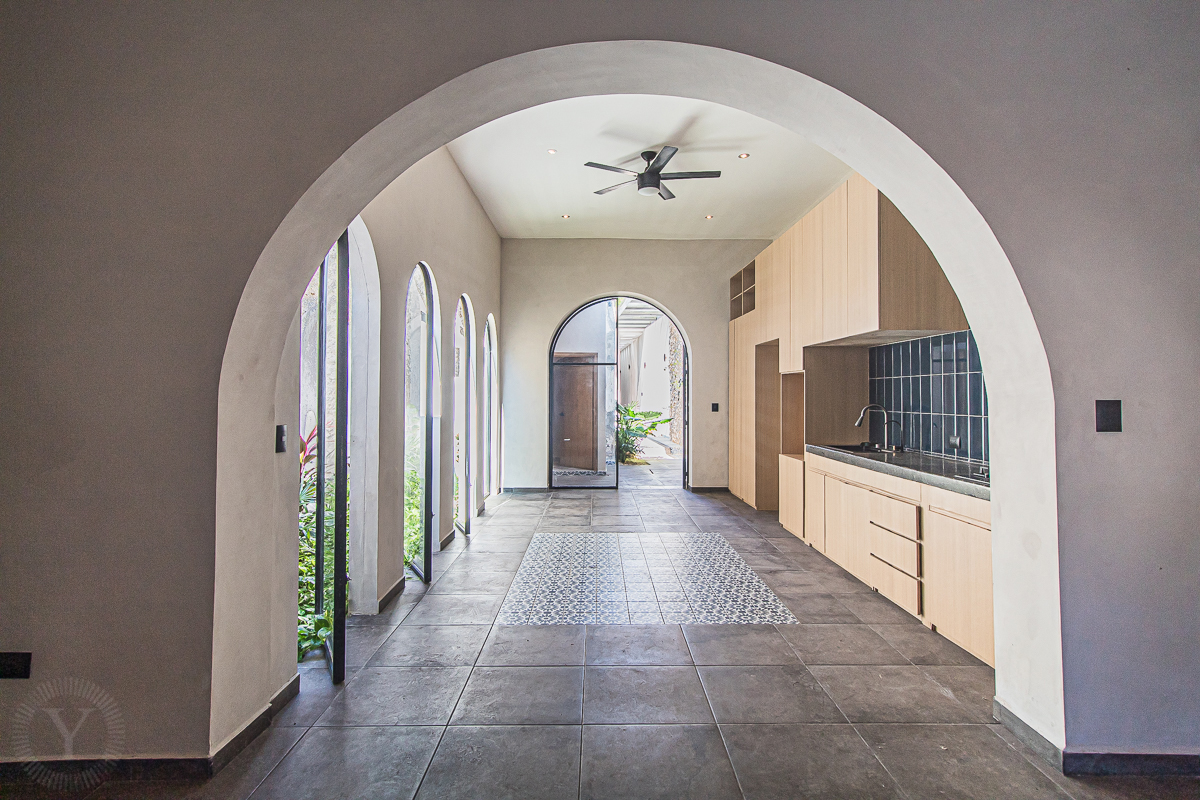 Casa Zebedeo has an open concept design from the living room, passing to the eat-in kitchen flanked by arches and indoor garden that brings brightness in the area.