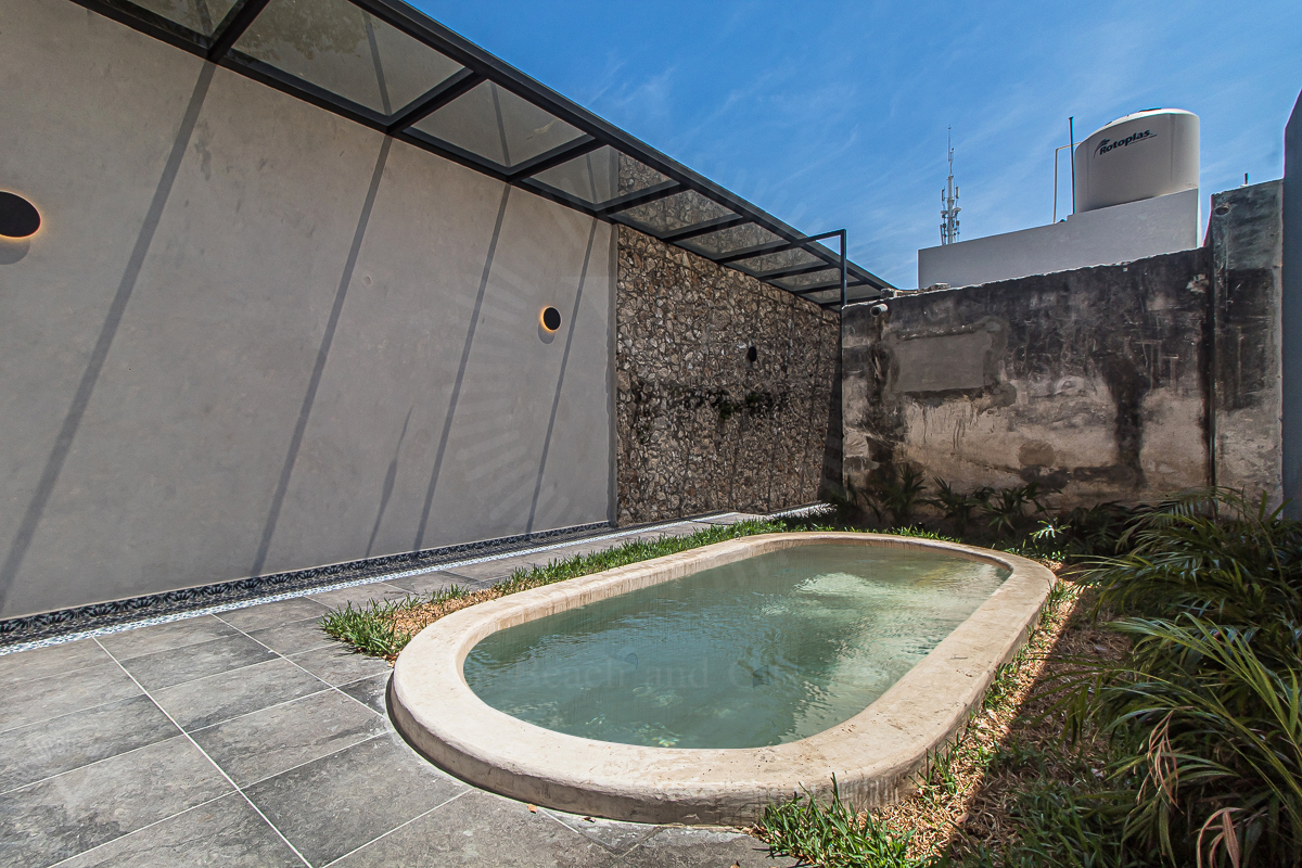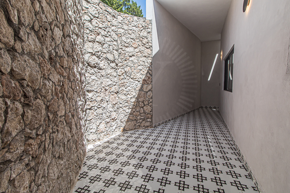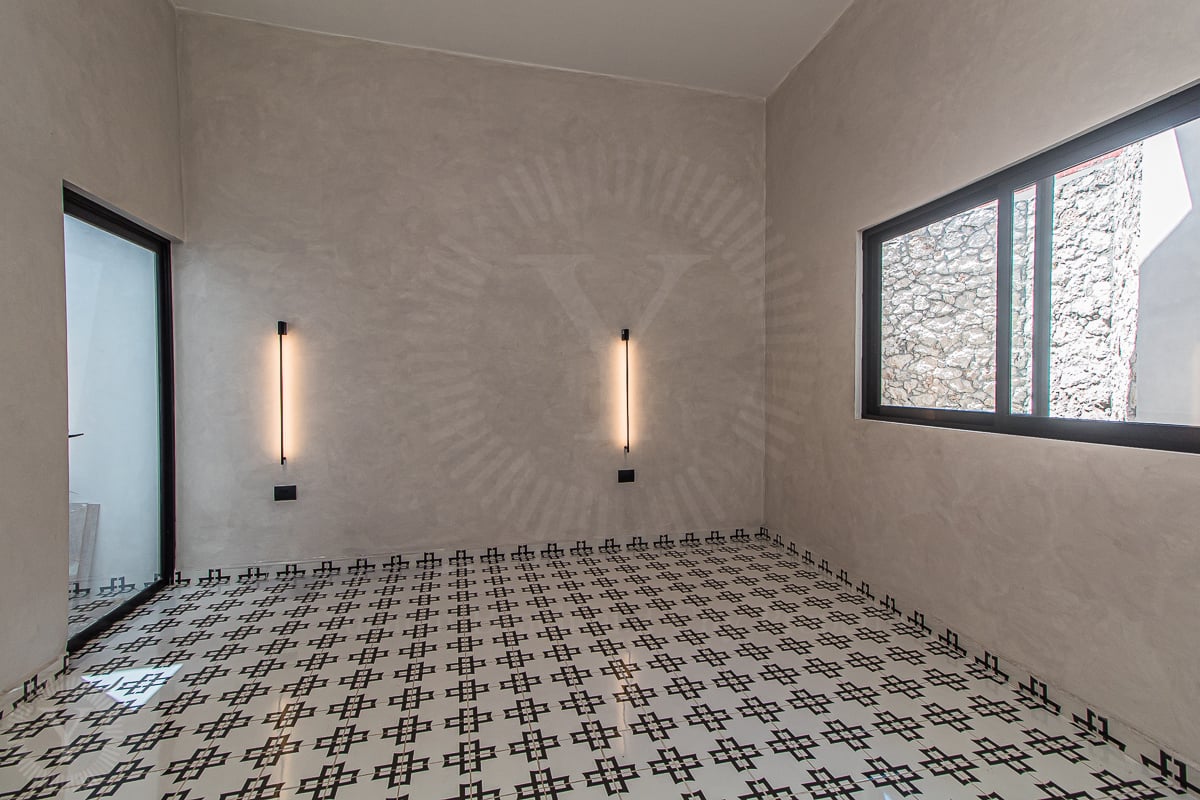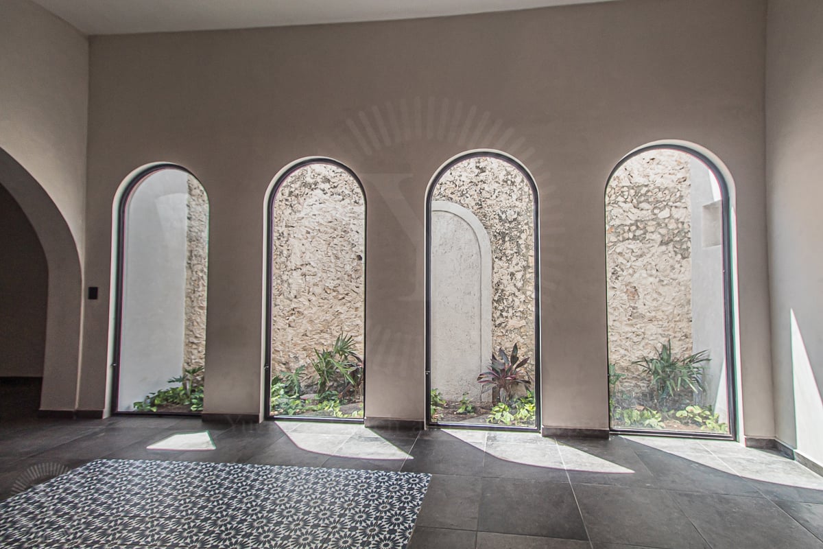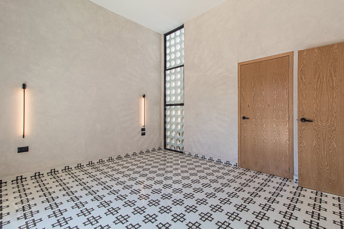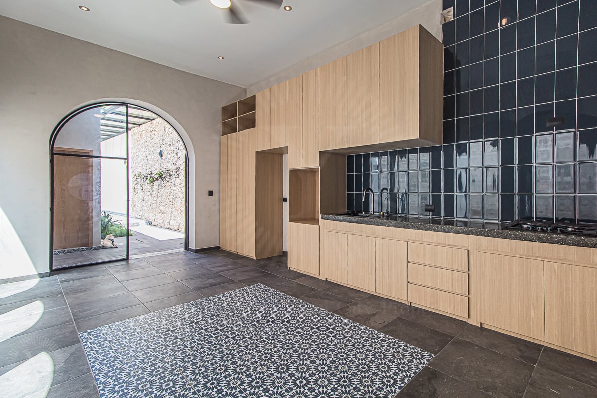 Casa Zebedeo has an open concept design from the living room, passing to the eat-in kitchen flanked by arches and indoor garden that brings brightness in the area.