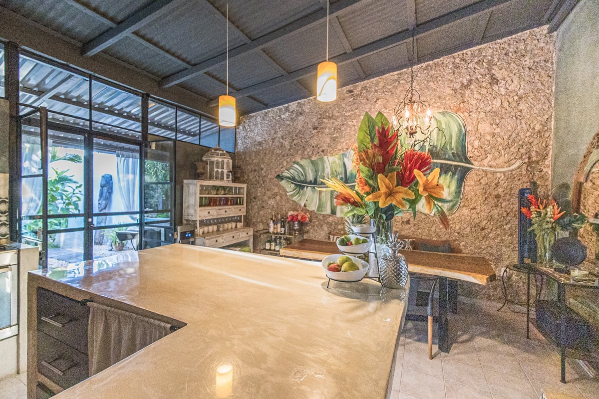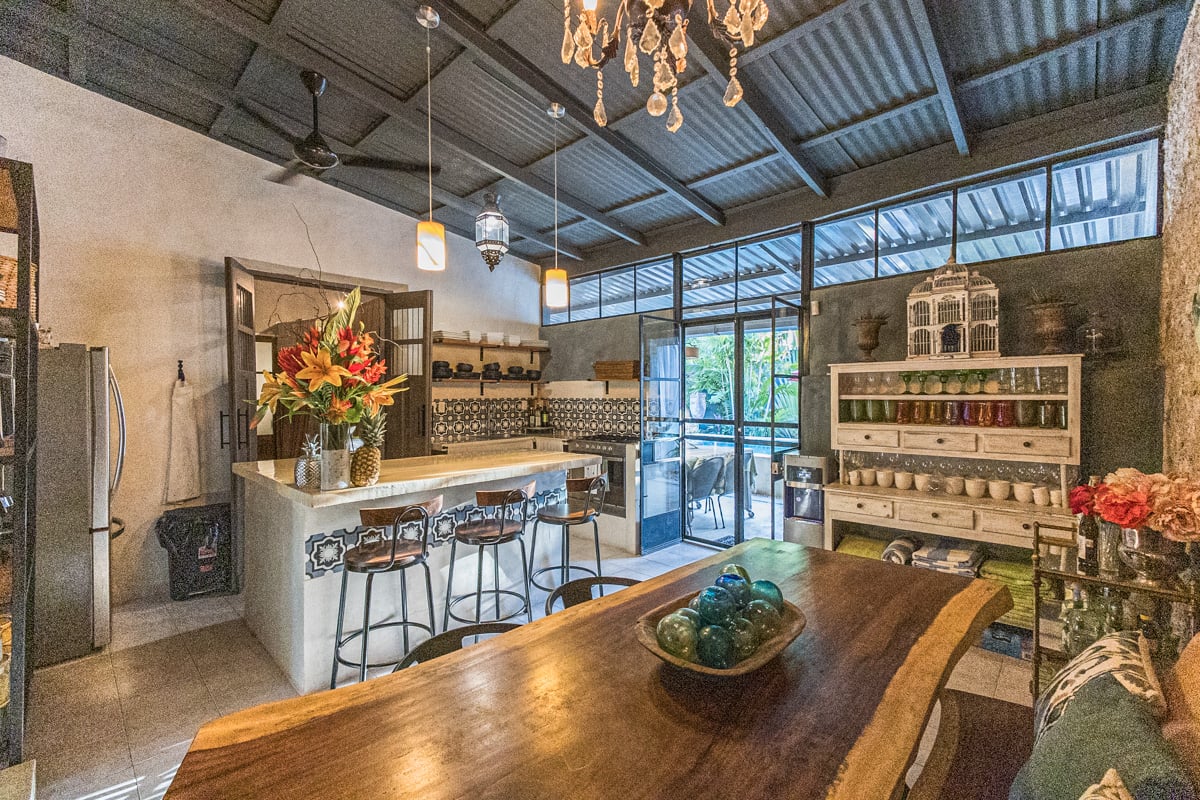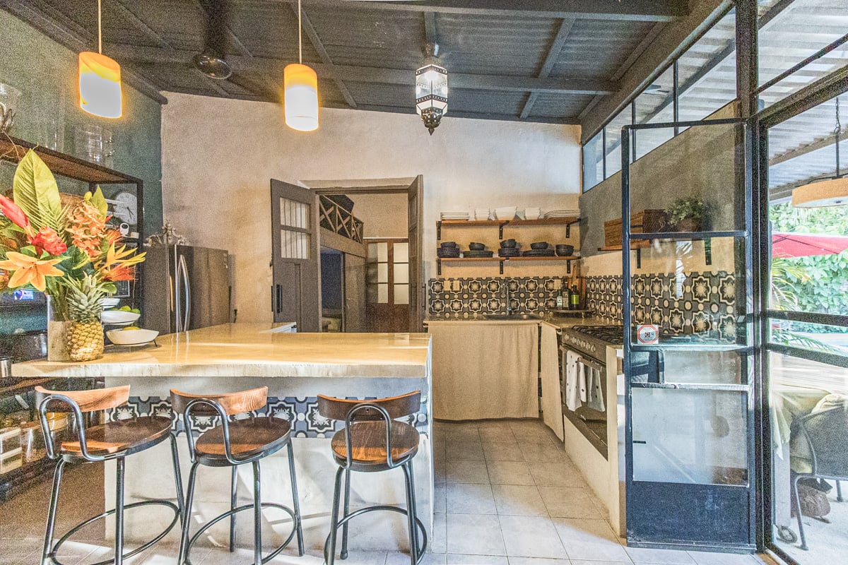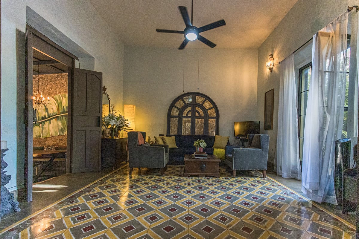 Hacienda Encantada was once part of a large Hacienda founded over 100 years ago know for raising livestocks for the local community. Now the home offers all the traditional Yucatecan charm of the original pasta tile floors, mampostería walls, and restored doors. Featuring a centrally located kitchen with island, spacious living room, and cozy dining area.