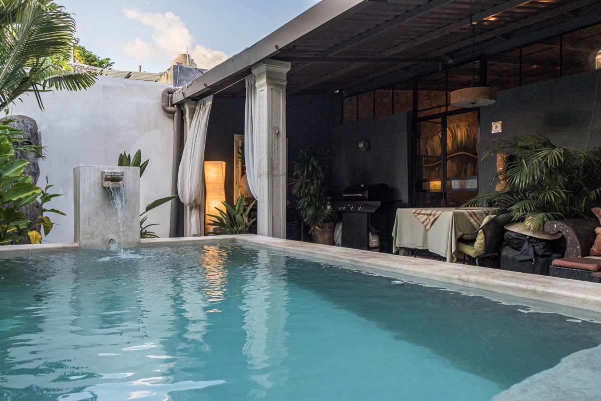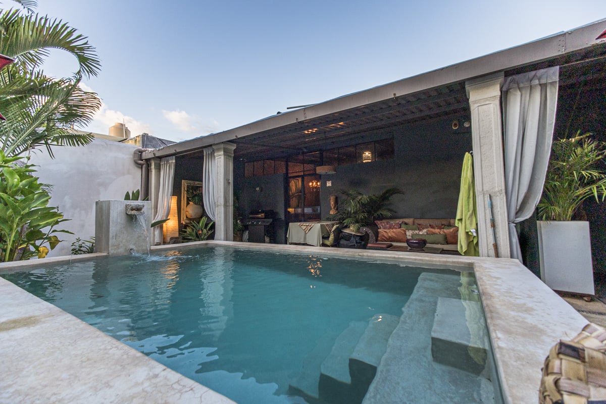 Outside, you will find an urban oasis complete with a covered terrace, swimming pool, and lush tropical garden, creating an inviting, peaceful retreat.